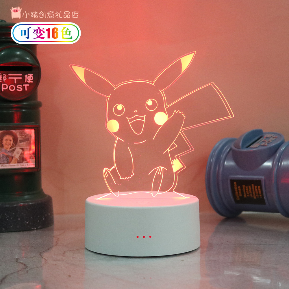 网红灯少女房间USB氛围灯 床头灯女生卧室睡眠柔光3D皮卡丘小夜灯