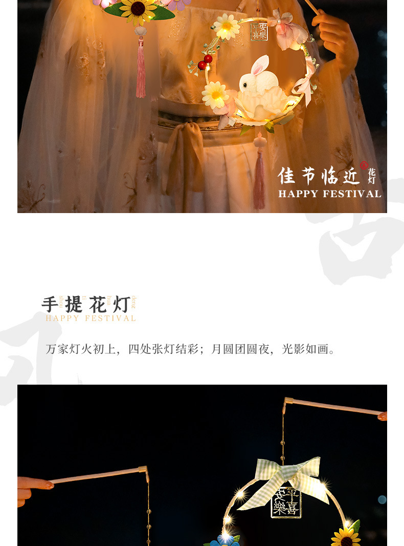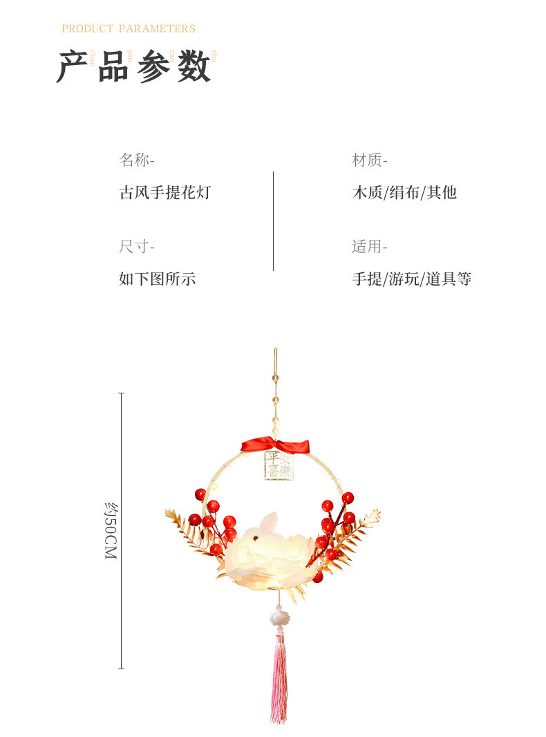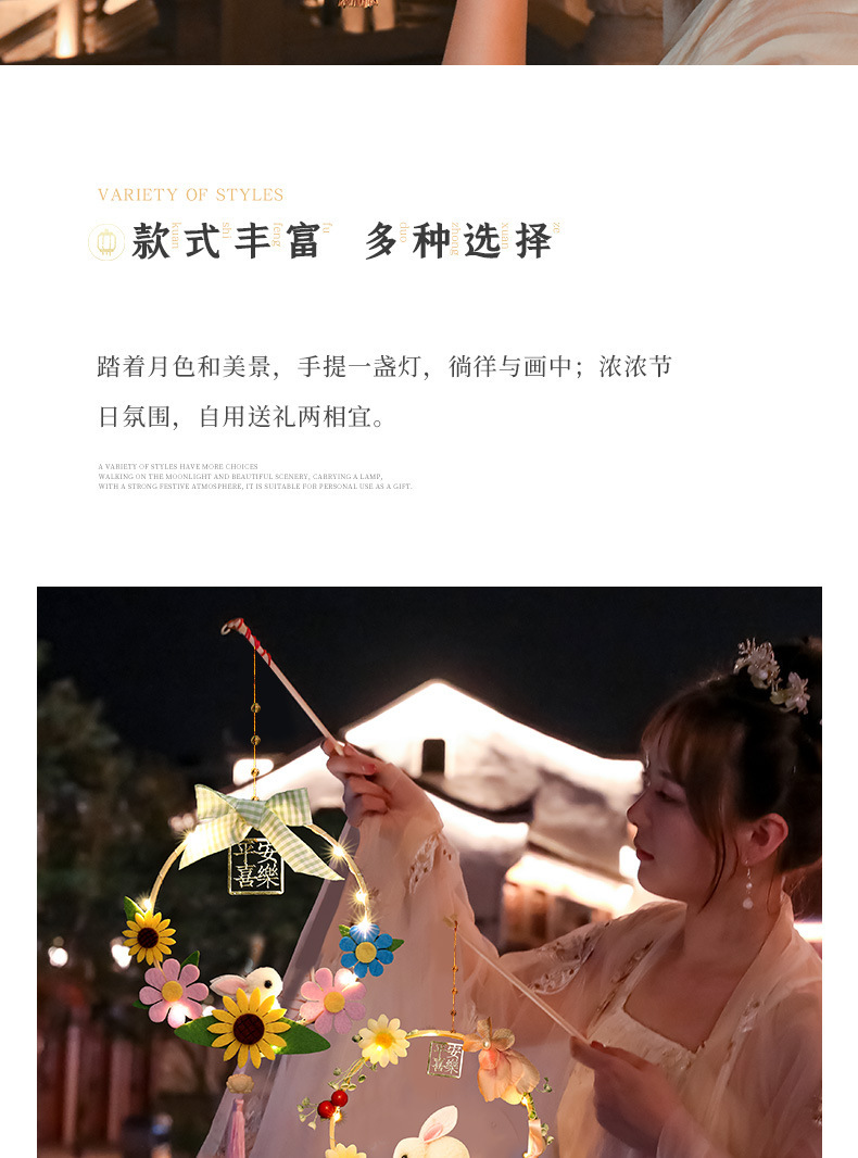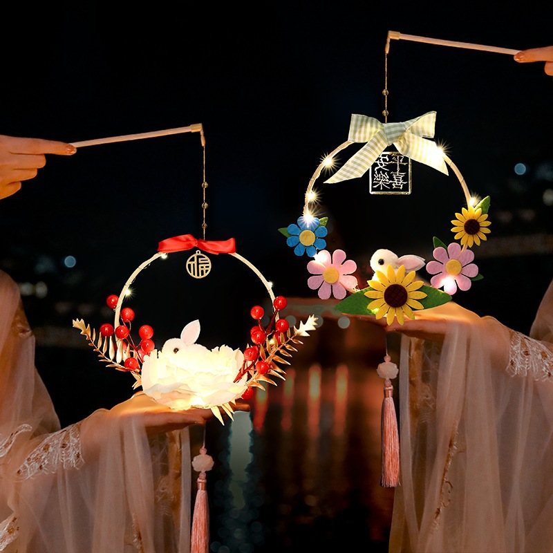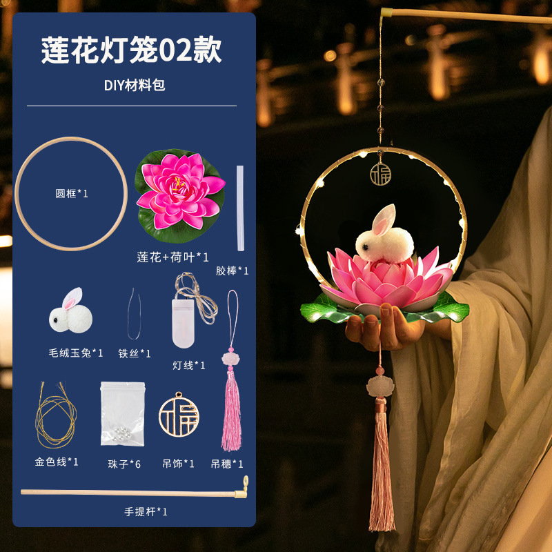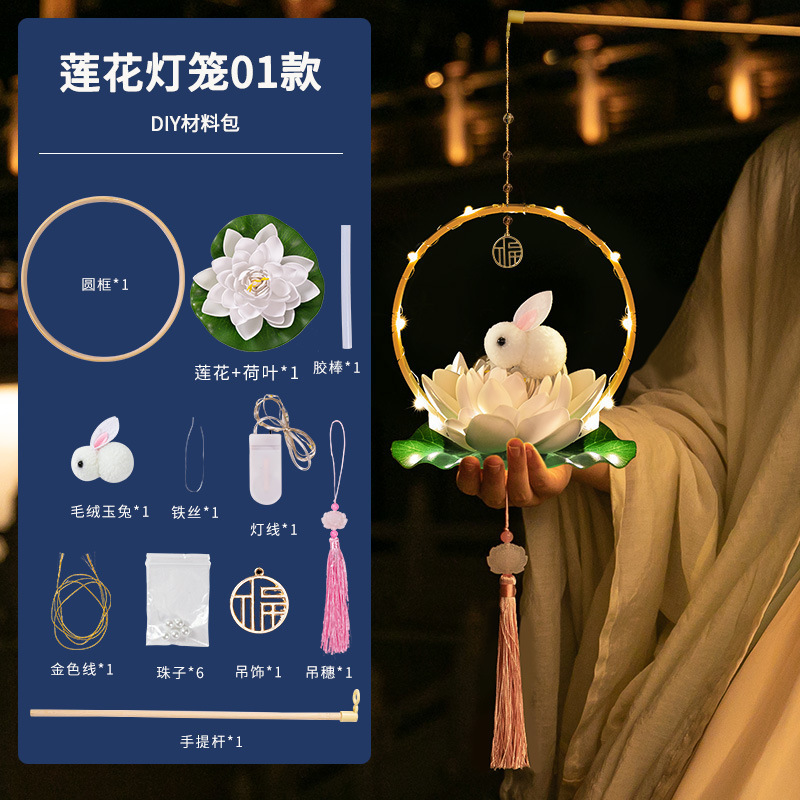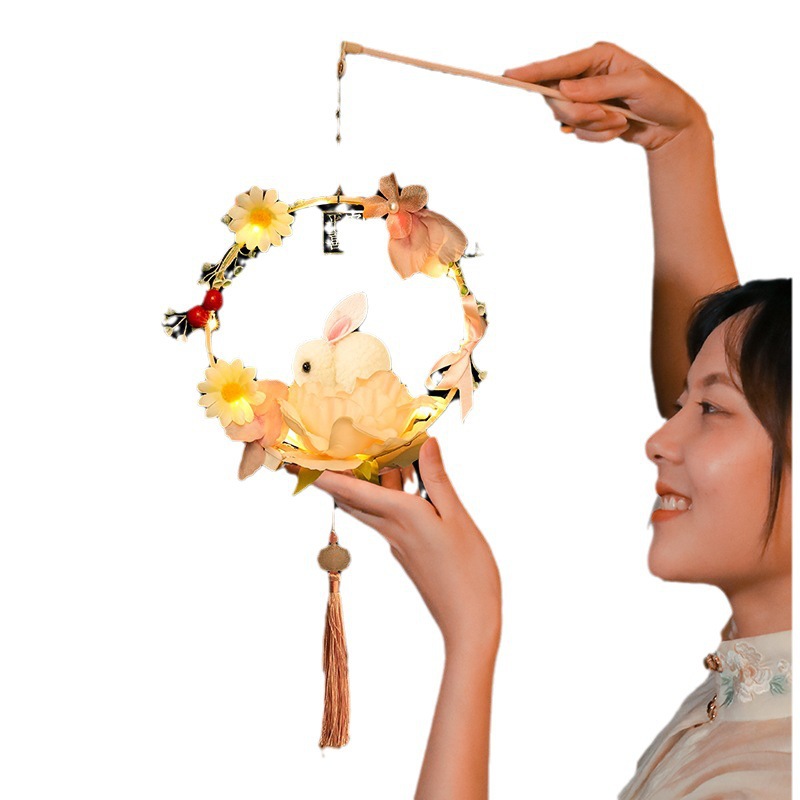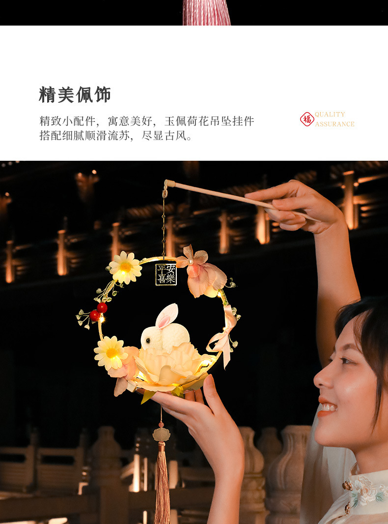 宫灯儿童手提发光兔子小灯笼diy手工制作材料包玉兔古风中秋花灯