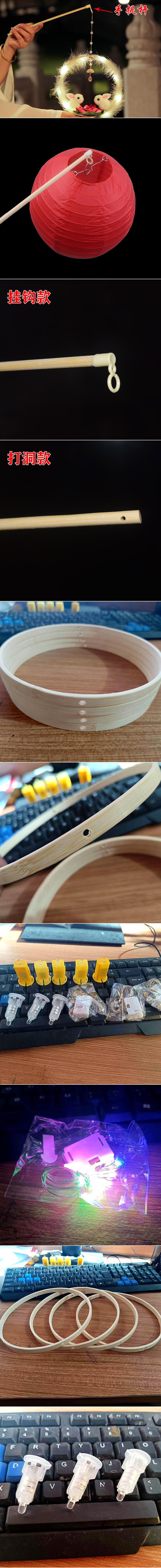 灯笼打孔木质兔子杆中秋节灯笼杆灯笼花灯灯芯团扇杆手提手提手柄
