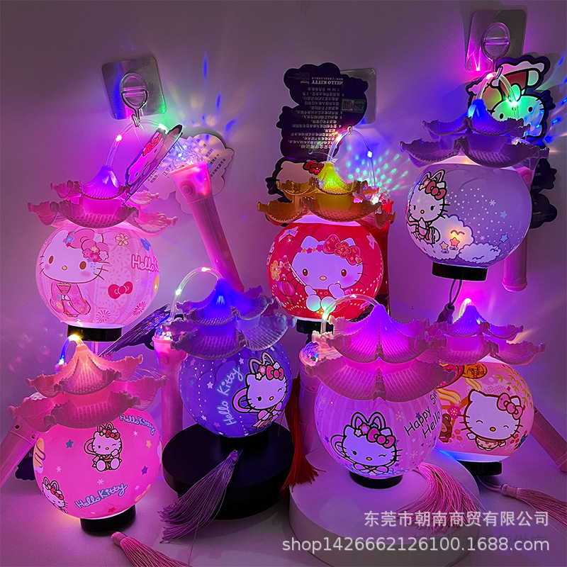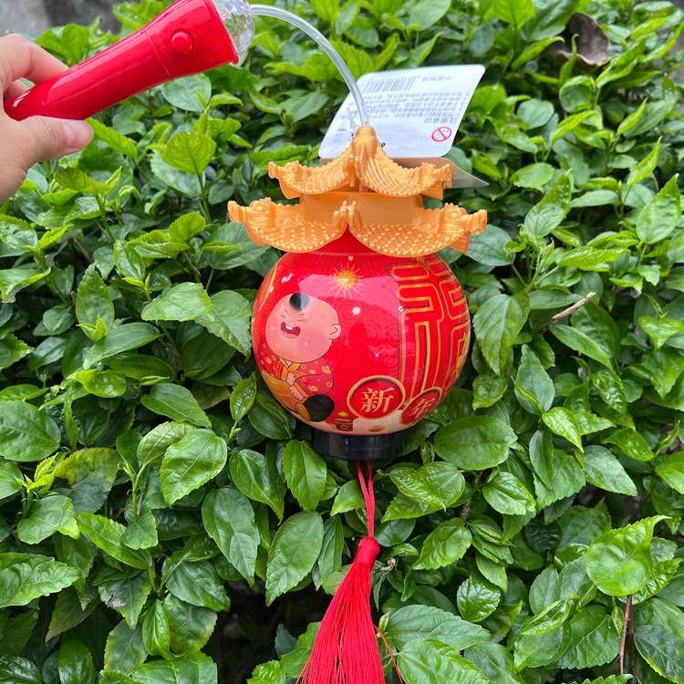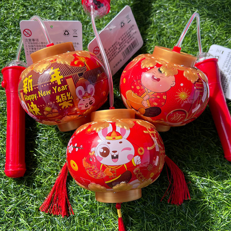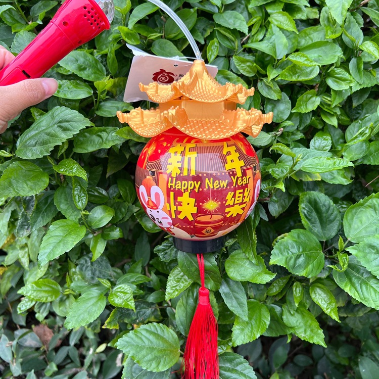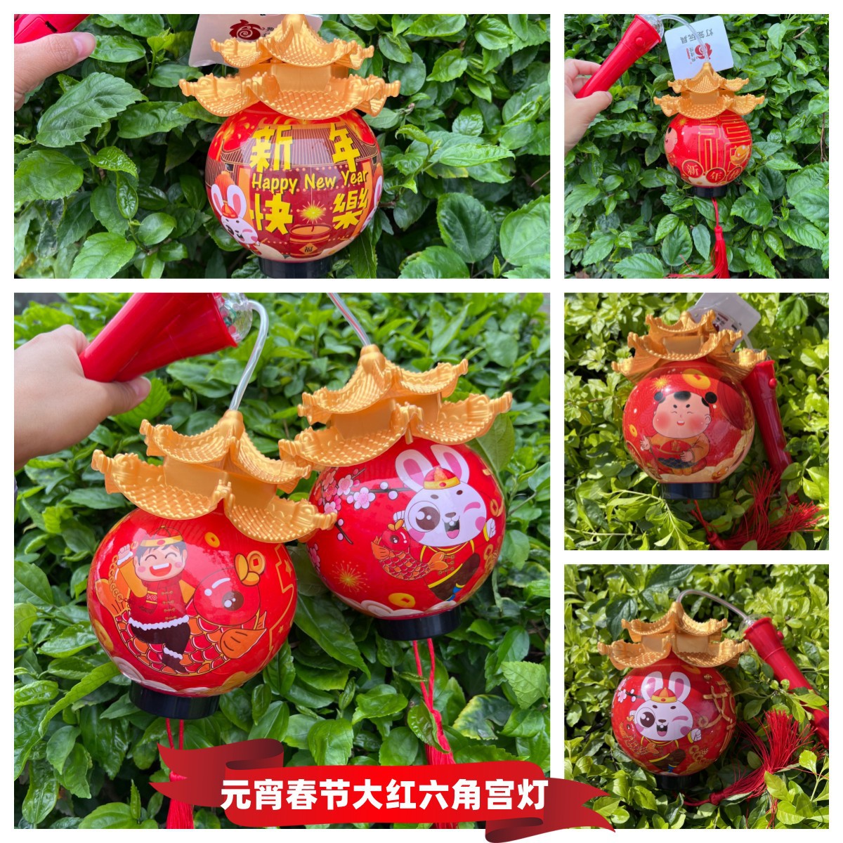新年元宵春节手提大红兔子花灯宝宝音乐彩光六角宫灯笼供商超批发