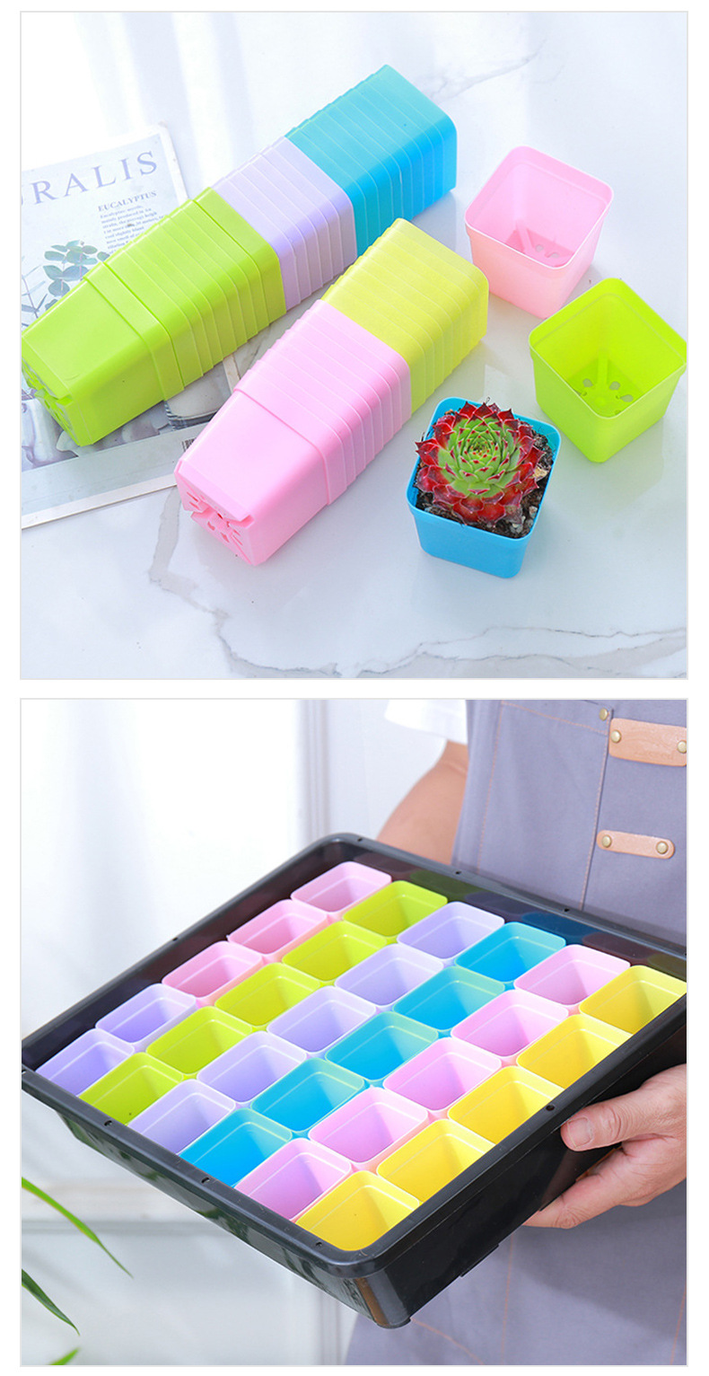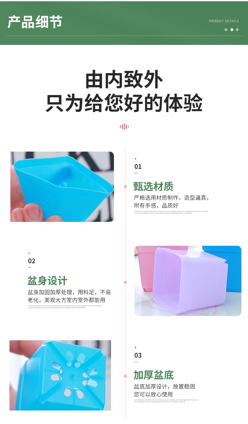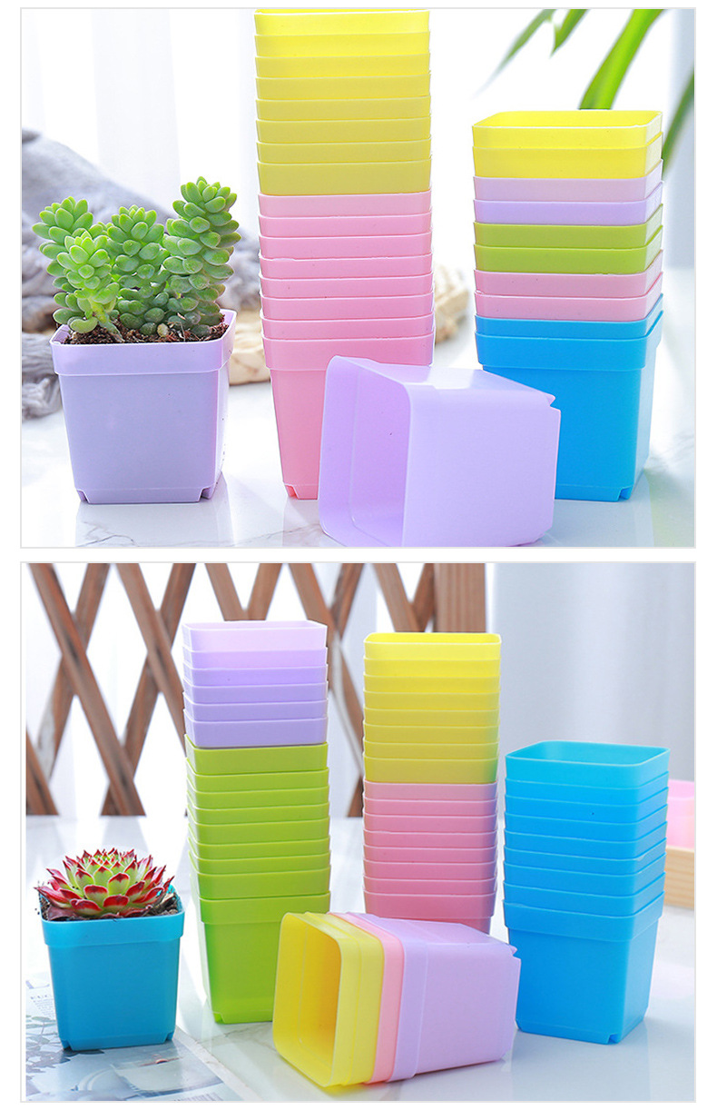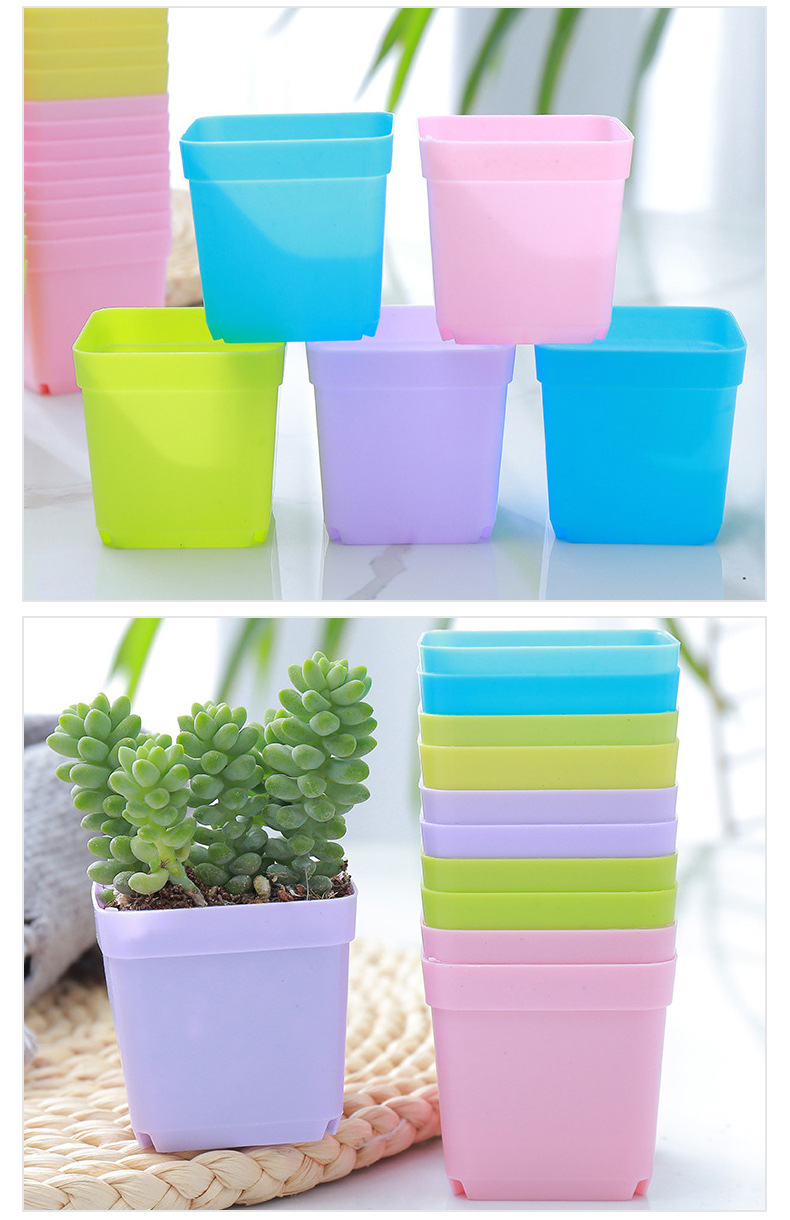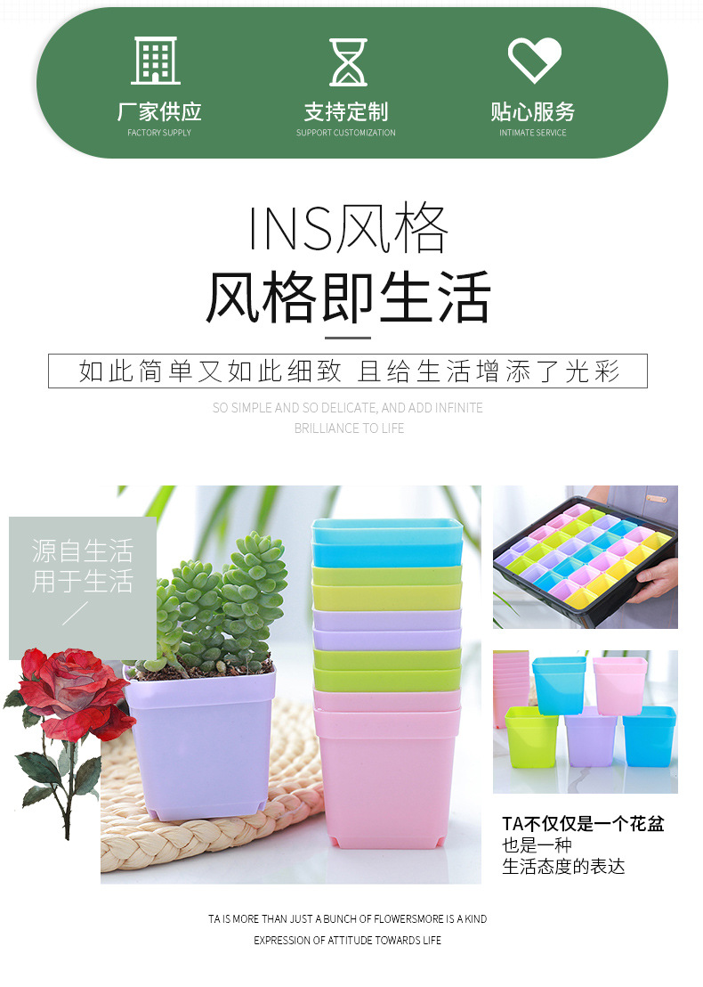 彩色小方盆多肉种植小花盆迷你方形塑料花盆办公室家居绿植摆件盆