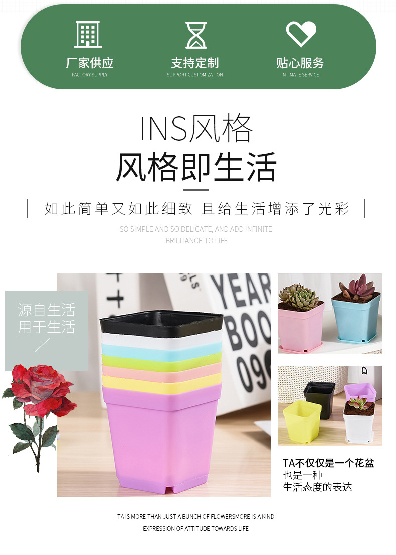 彩色迷你园艺小方盆绿植培育小花盆 多肉养殖盆方形塑料盆育苗盆