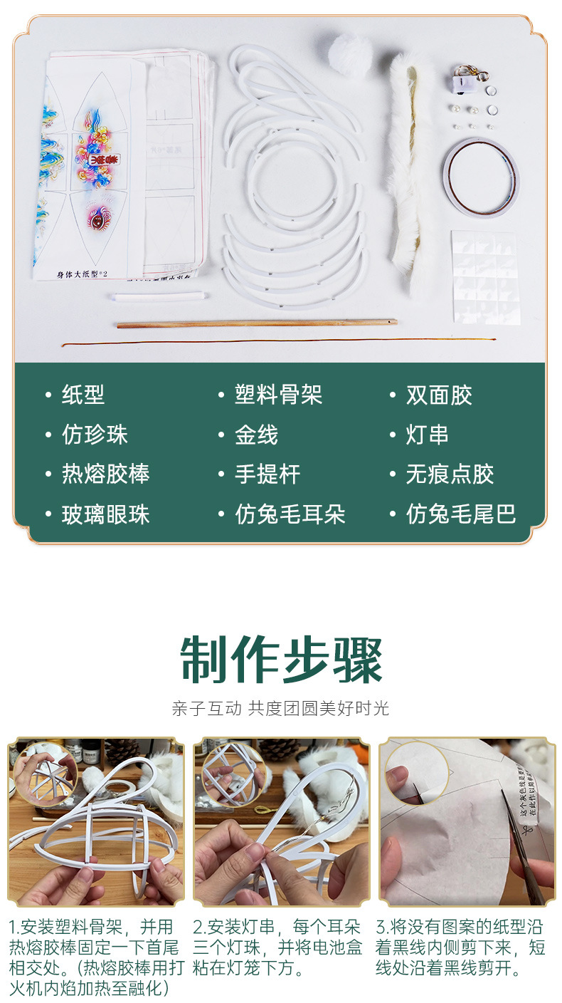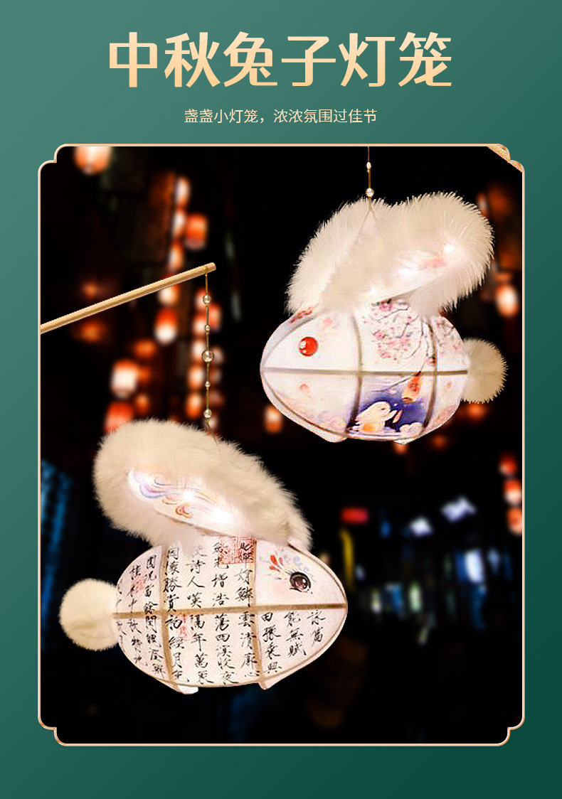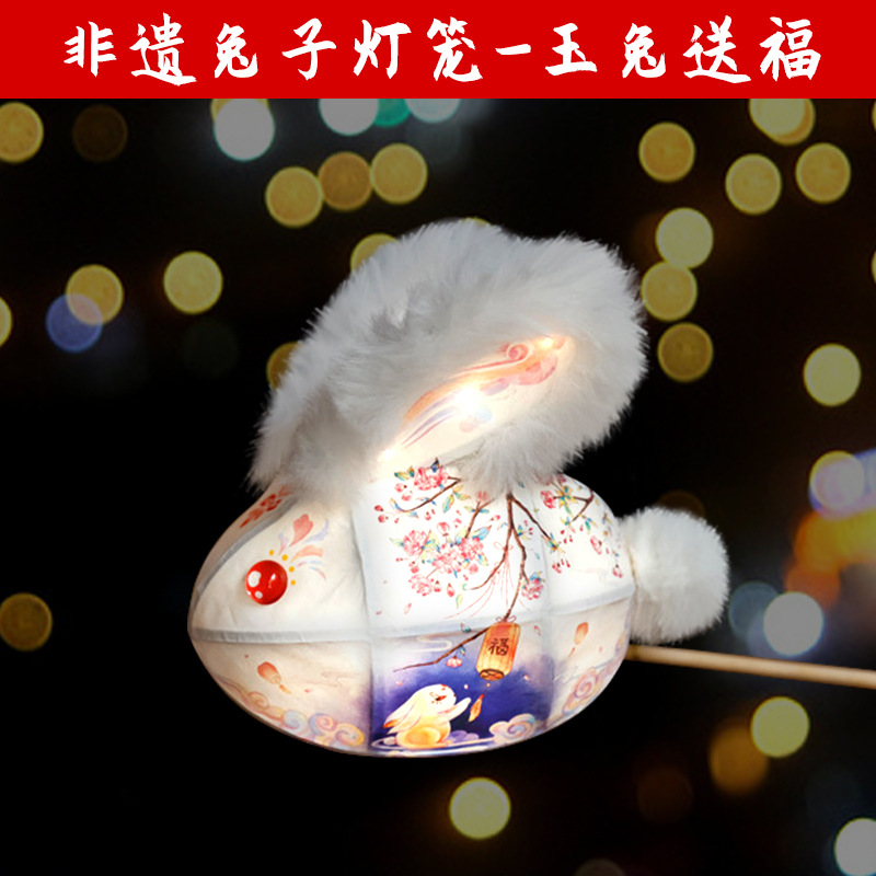 中秋非遗传统手工兔子灯中秋春节元宵节手提古风灯笼发光玩具批发