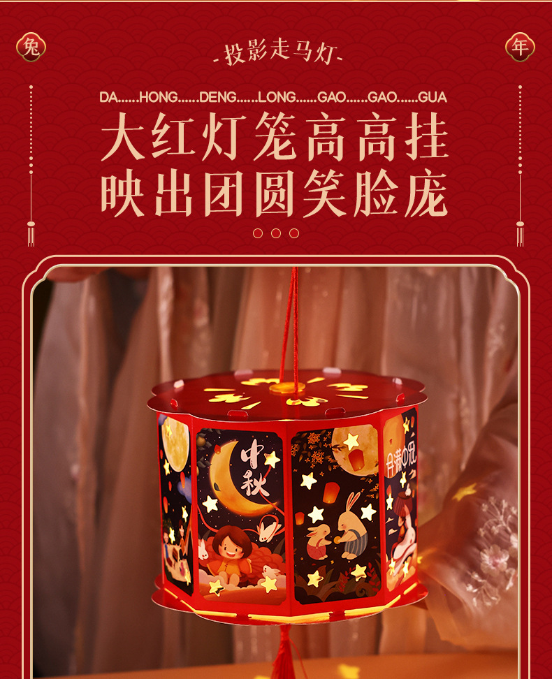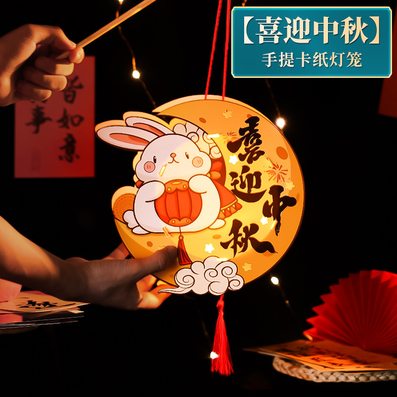 古风汉服玉兔纸灯笼di y手工制作材料包儿童中秋手提灯笼花灯宫灯
