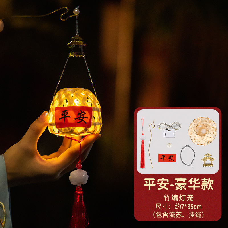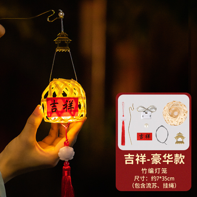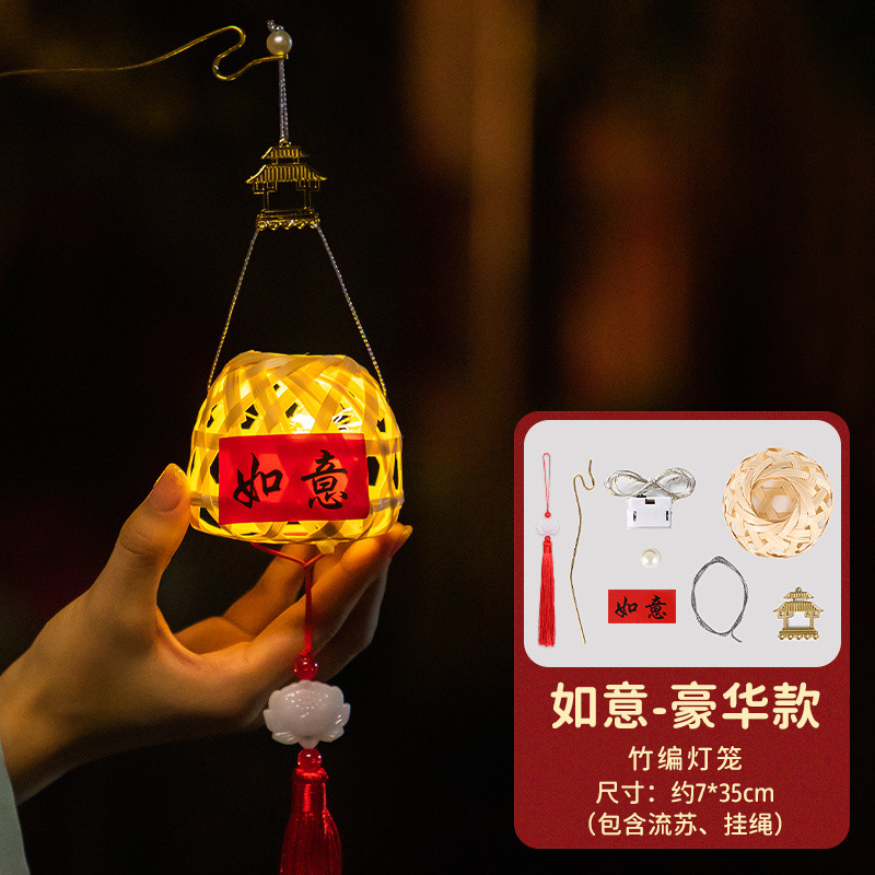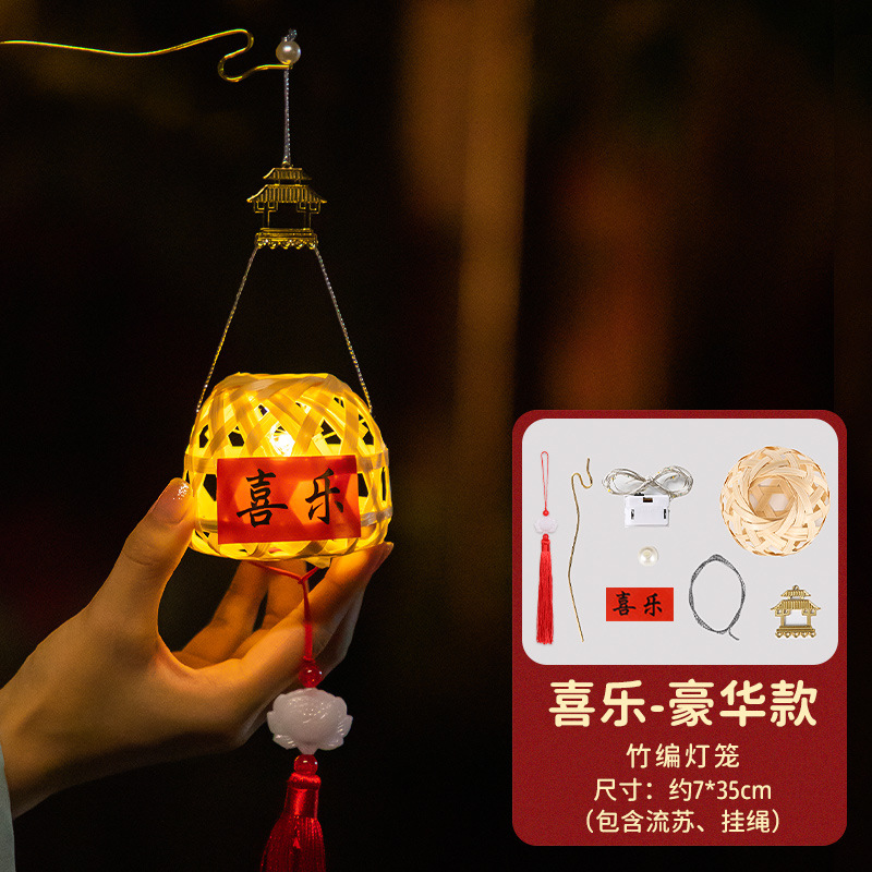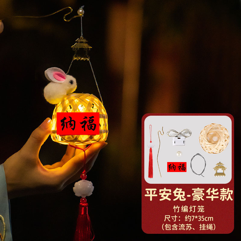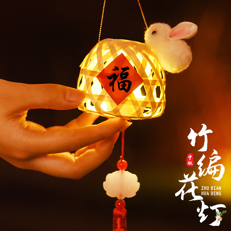中秋节小灯笼2024新款国风儿童中秋兔子花灯竹编手工diy手提灯