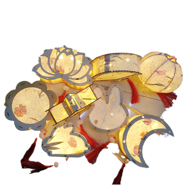 中秋节手工灯笼儿童DIY灯笼花草纸灯笼制作材料包古风手提宫灯
