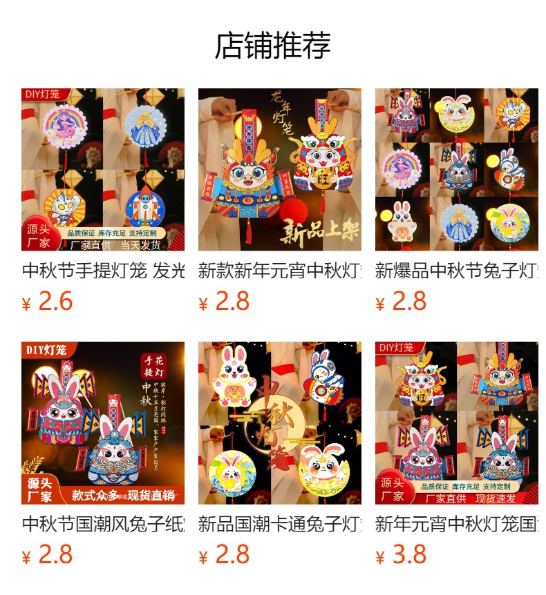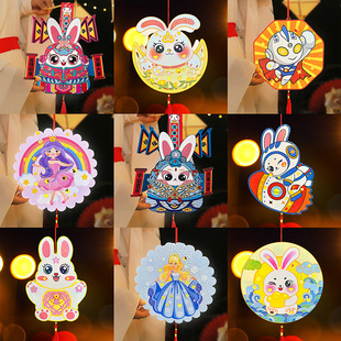 新款中秋节兔子纸灯笼中式国潮风手提发光儿童手工diy小提灯花灯