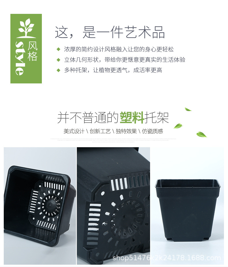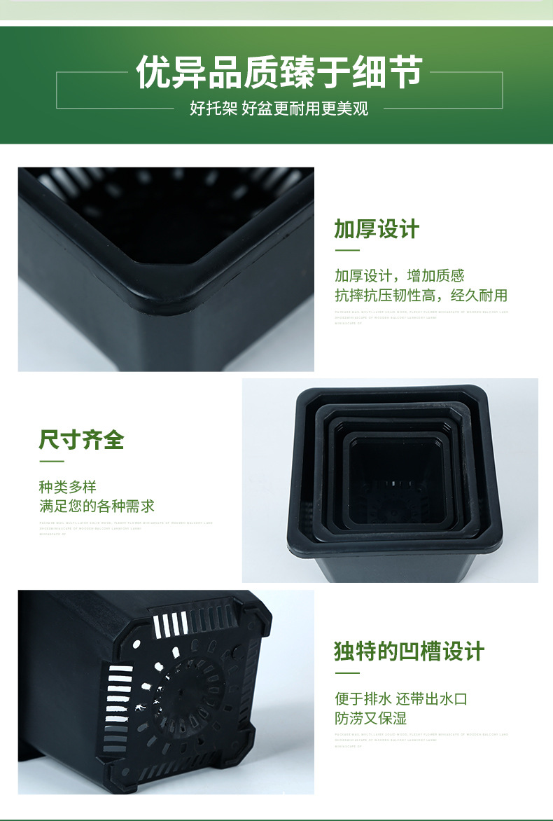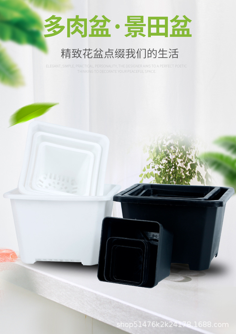 厂家批发大号加厚多肉方盆黑方花盆加厚正方形盆景盆景天盆跨境