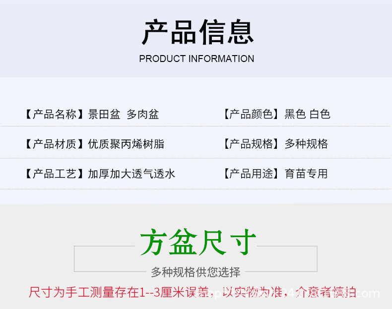 | jingtian 12 square meters (caliber: 11.5 high: 8.3) order 1000/bag(景天12方(口径:11.5 高:8.3)拍1000个/袋) | USD $0.08 | 9986975 piece available |