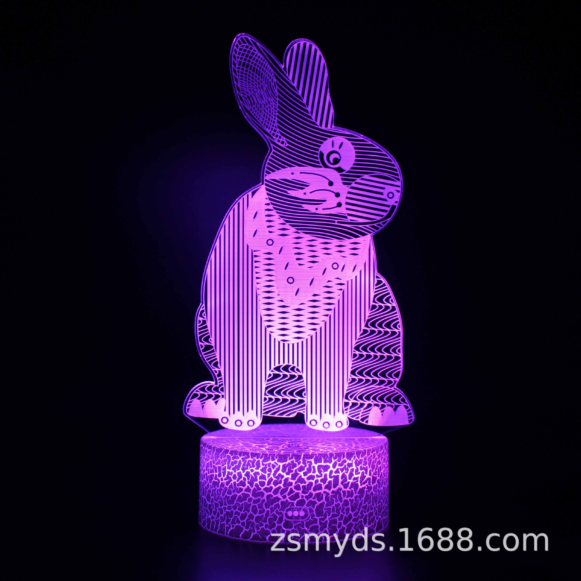 跨境专供呆萌兔子创意3D立体台灯led床头小夜灯视觉灯情人节礼品