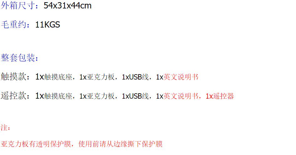| 七彩触摸+USB+遥控16色+亚克力板整套 | USD $3.51 | 50000 set available |