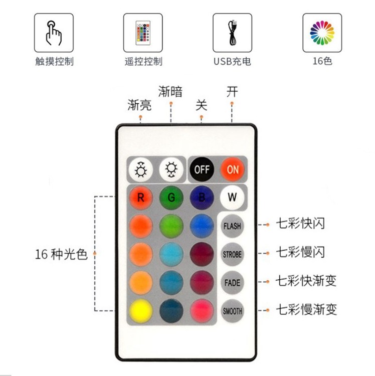 | 七彩触摸+USB+遥控16色+亚克力板整套 | USD $3.51 | 49915 set available |