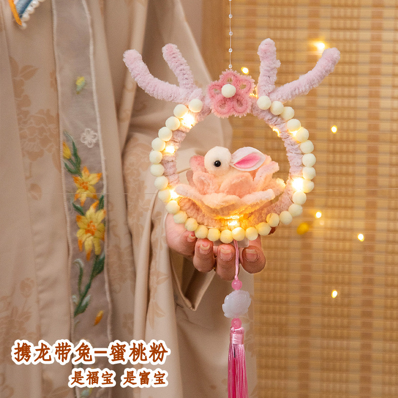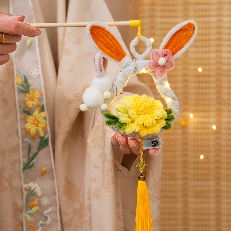 中秋节兔子灯笼儿童diy手工材料扭扭棒手提发光花灯夜市摆摊批发