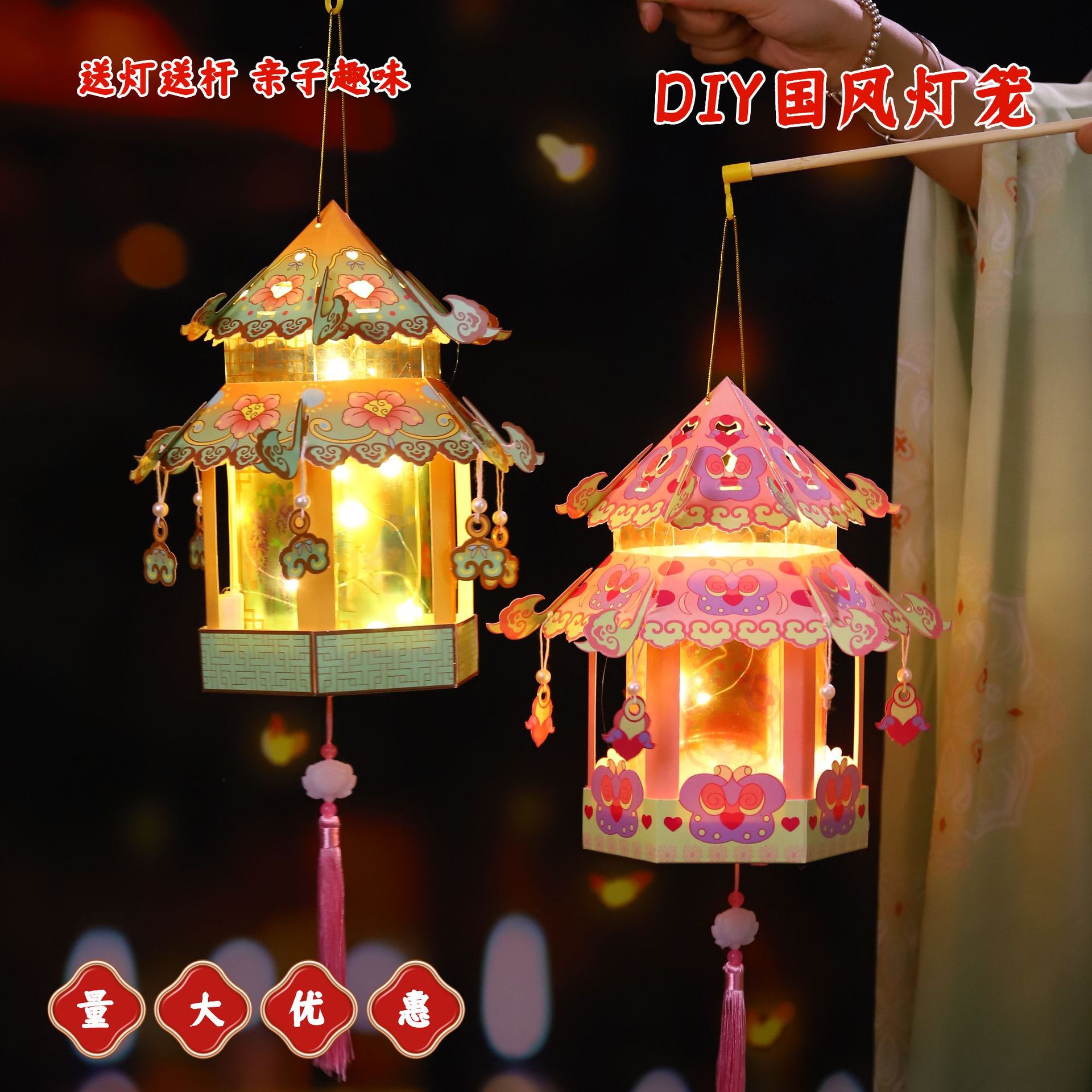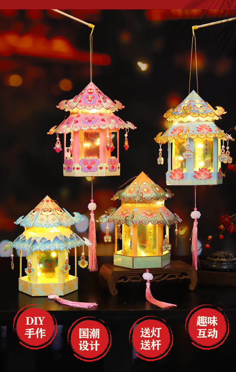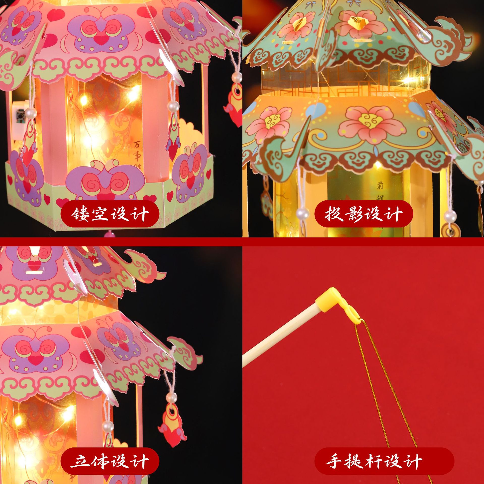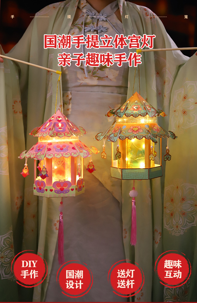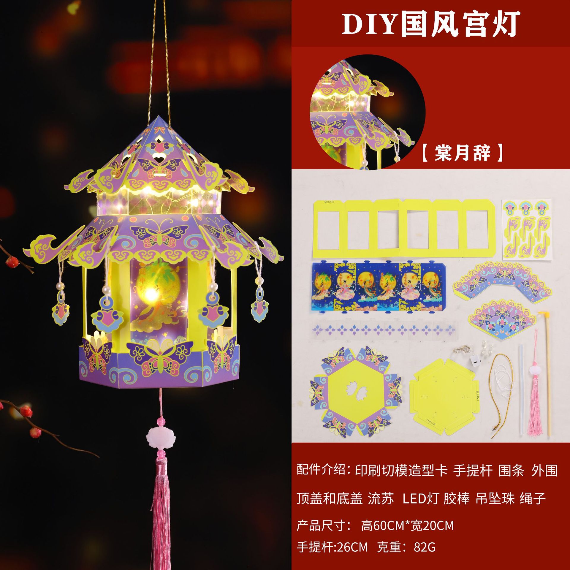 2024新款中秋节灯笼兔子宫灯手工diy材料包儿童手提发光玉兔花灯