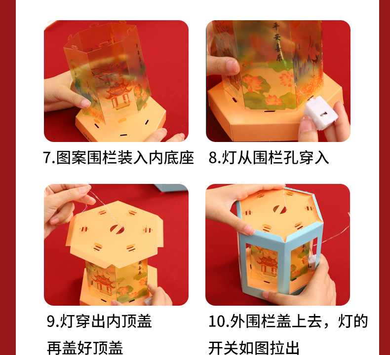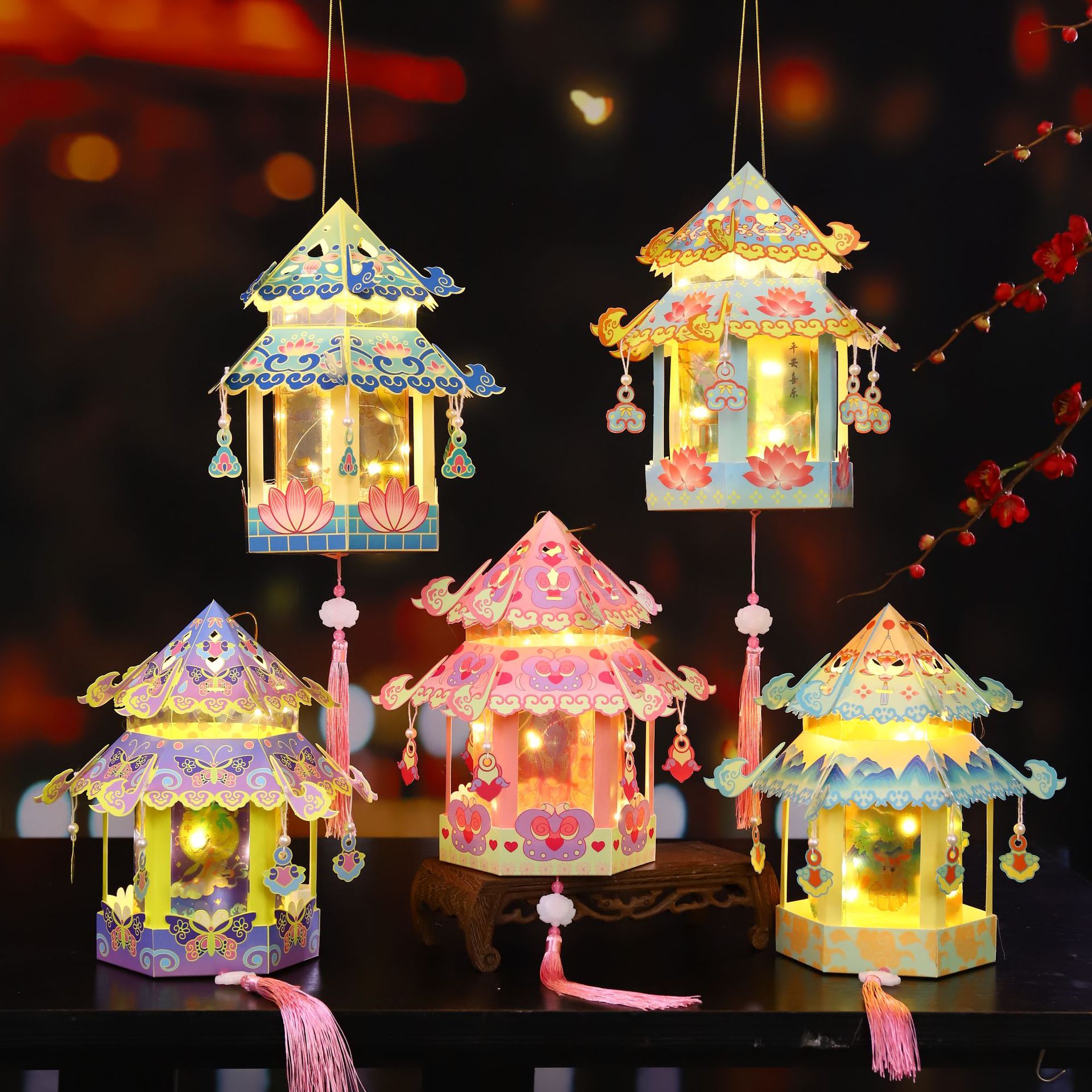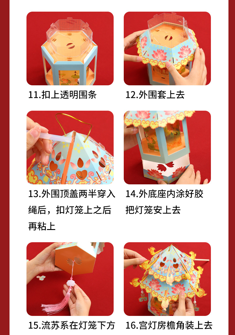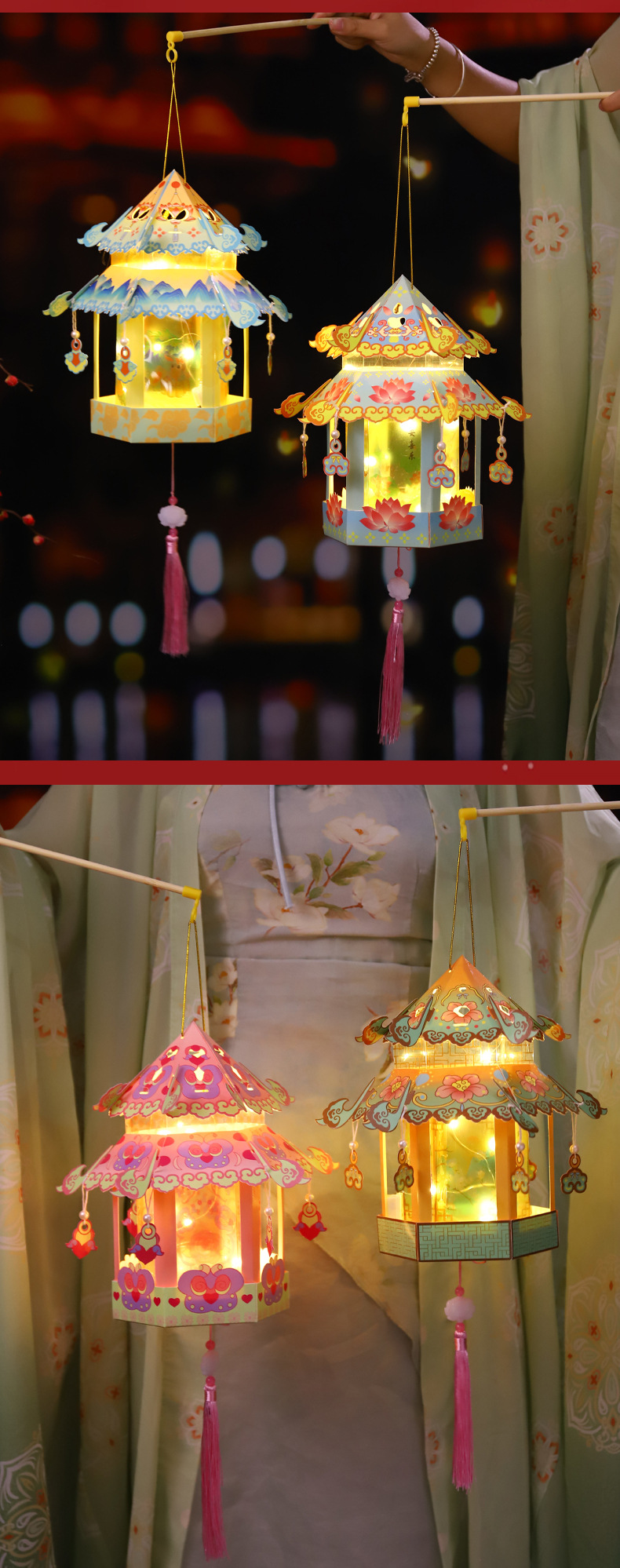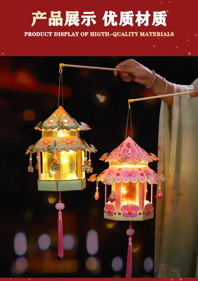 2024新款中秋节灯笼兔子宫灯手工diy材料包儿童手提发光玉兔花灯