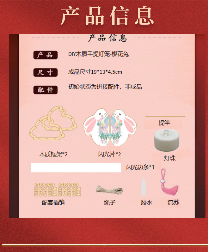 新年元宵灯笼DIY手工材料包古风宫灯制作儿童手提花灯玉兔灯笼