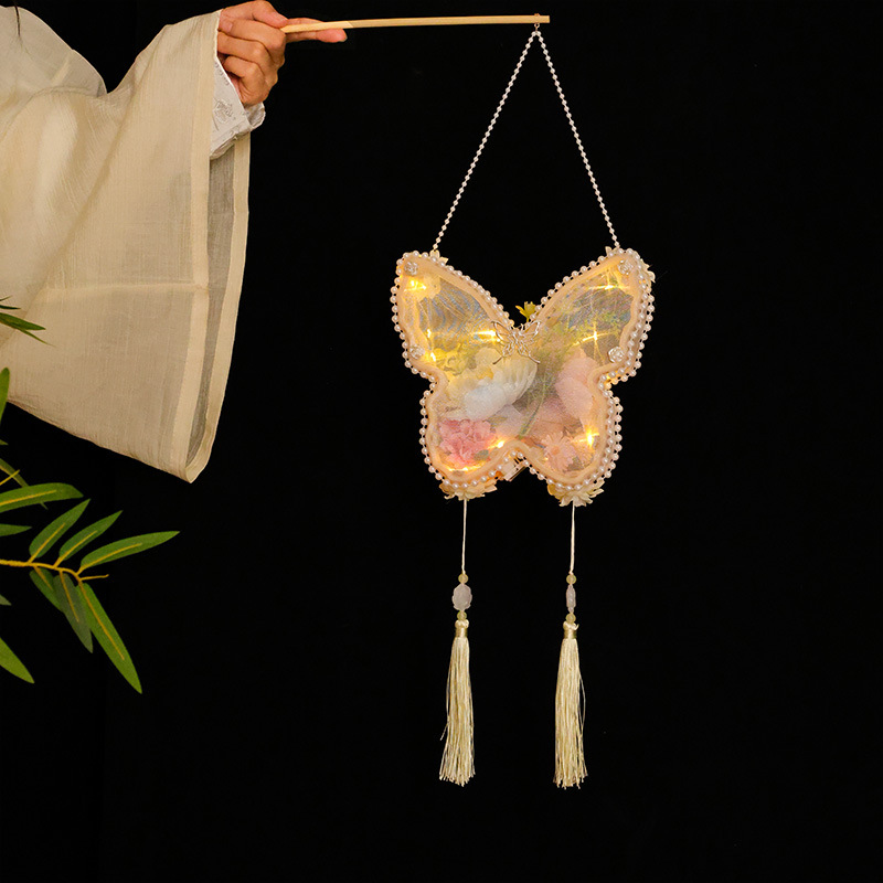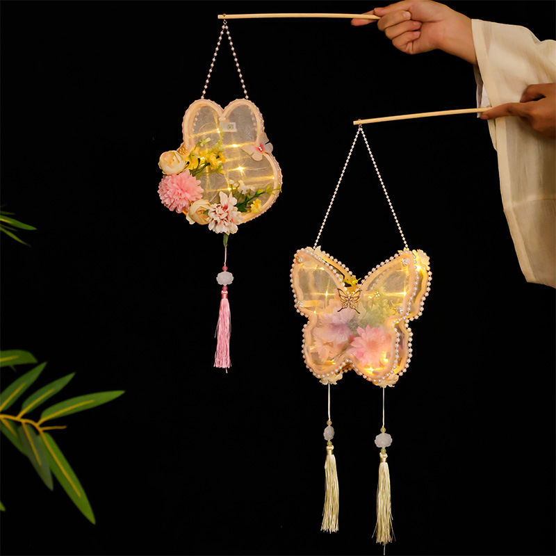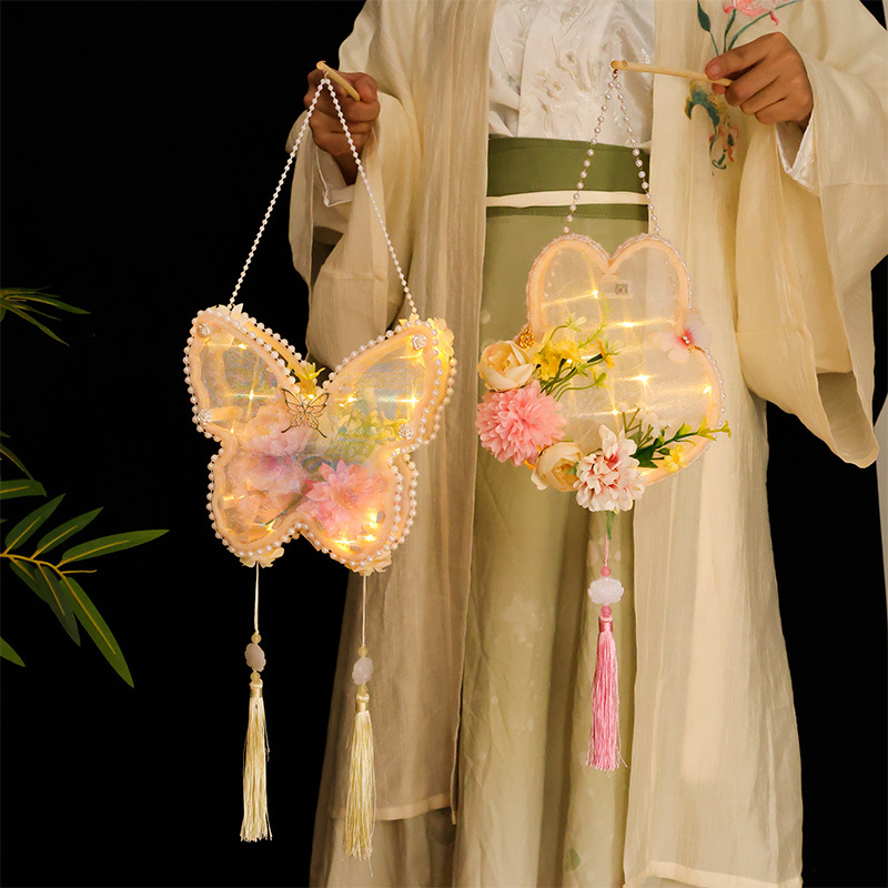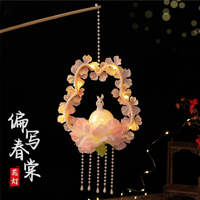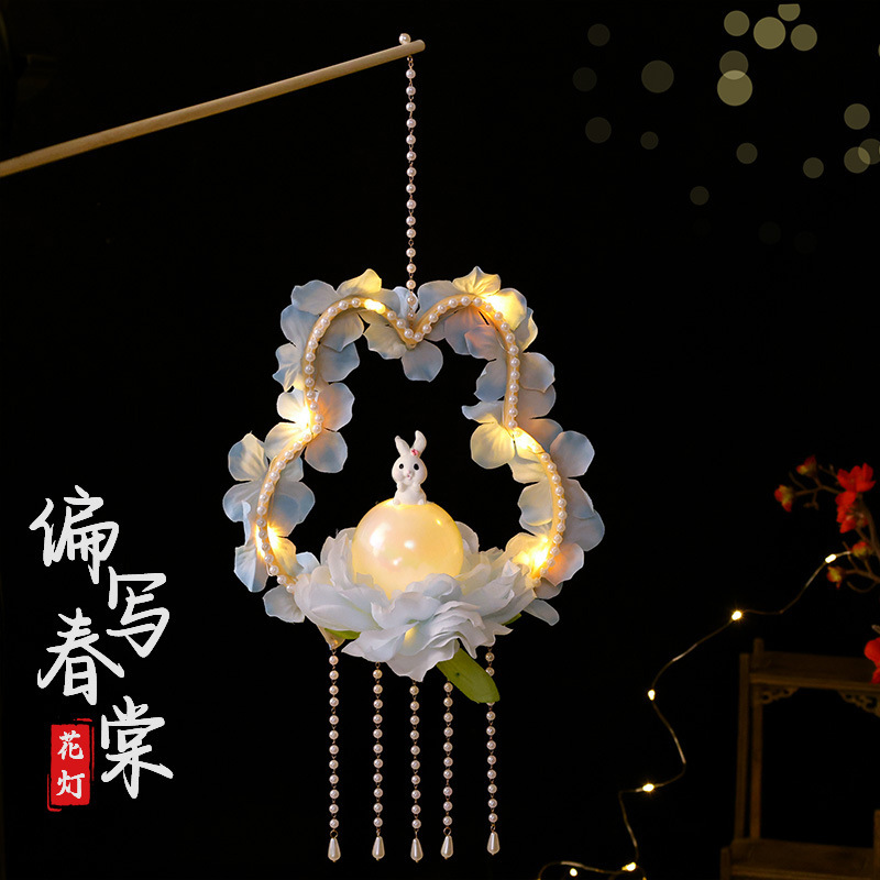 汉服中秋节国风花灯蝴蝶兔子手提宫灯拍照道具仿真花中式新款国风