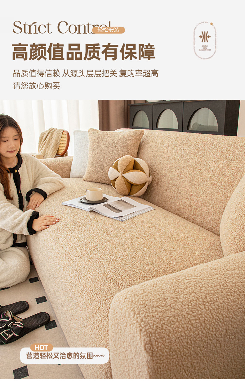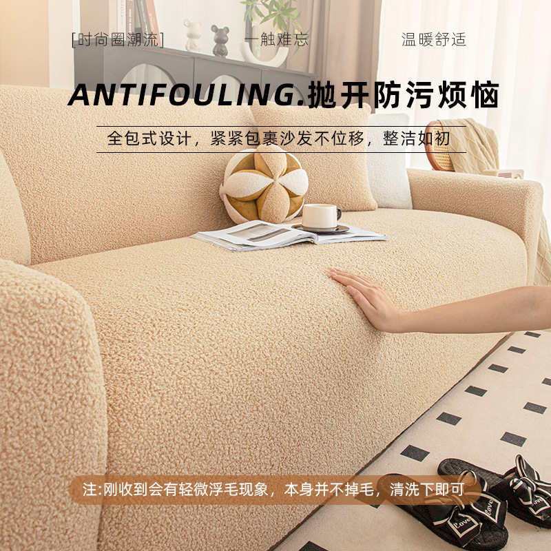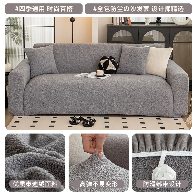 冬季新款ing风加厚泰迪绒沙发套罩全包万能套防滑弹力沙发笠盖布