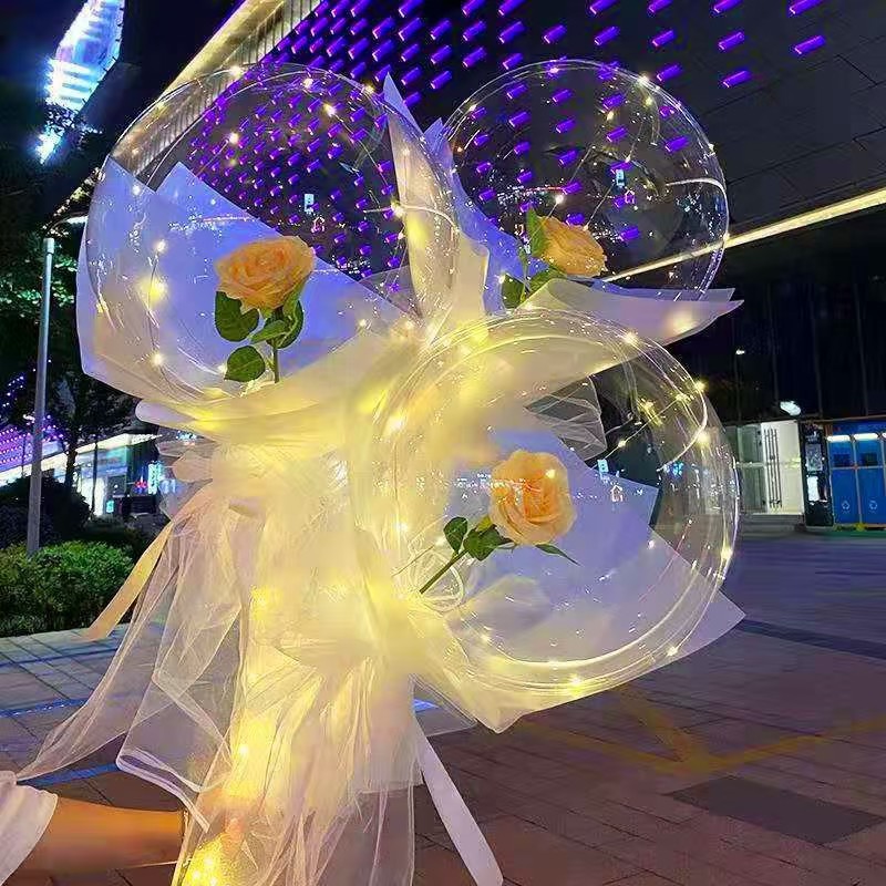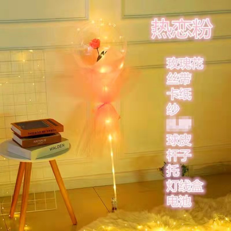 玫瑰花波波球网红透明气球夜市摆摊地推发光气球摆摊情人节礼物
