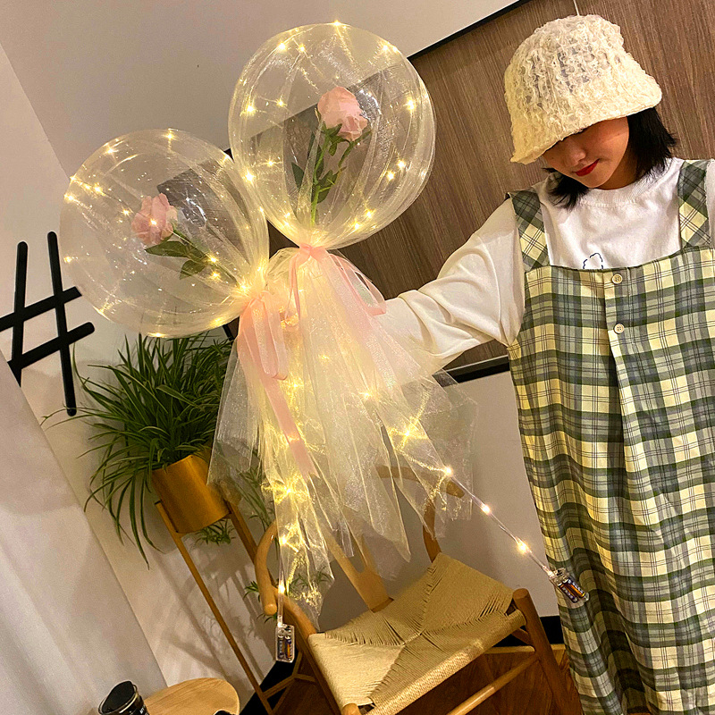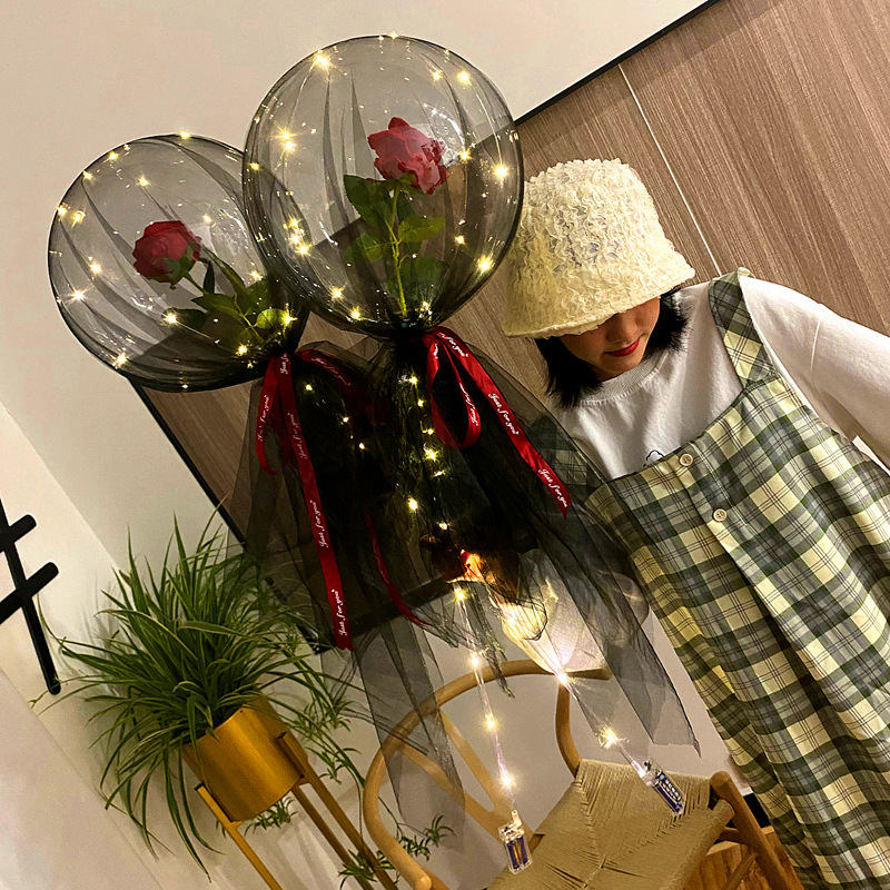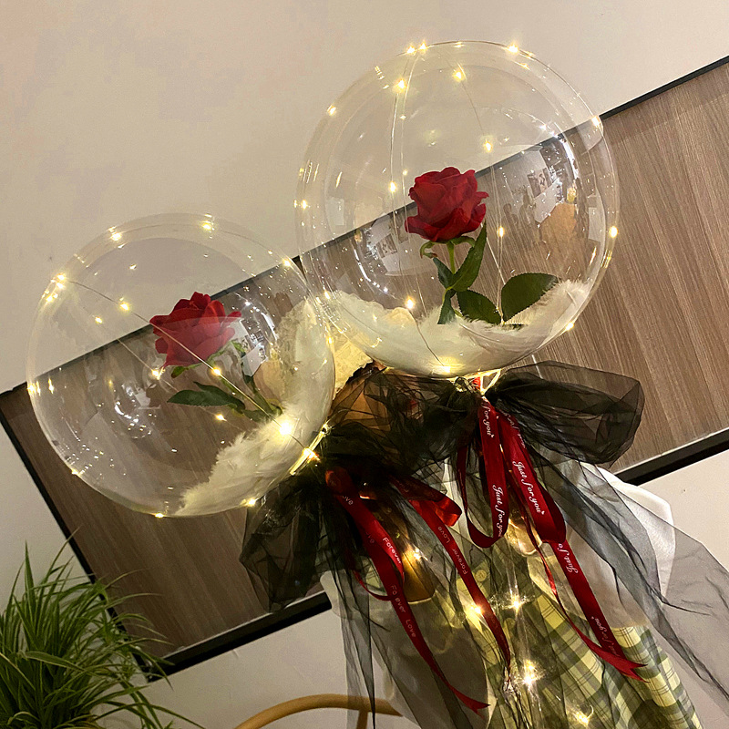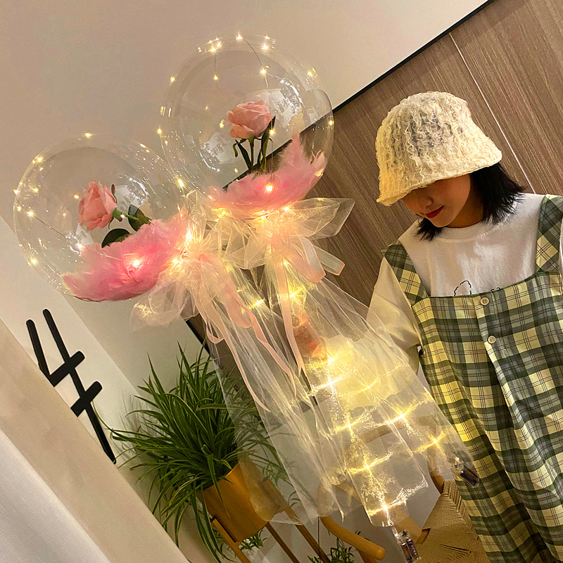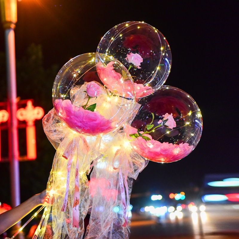 玫瑰花波波球花束网红发光抖音同款波波球玫瑰花地推摆摊带灯气球