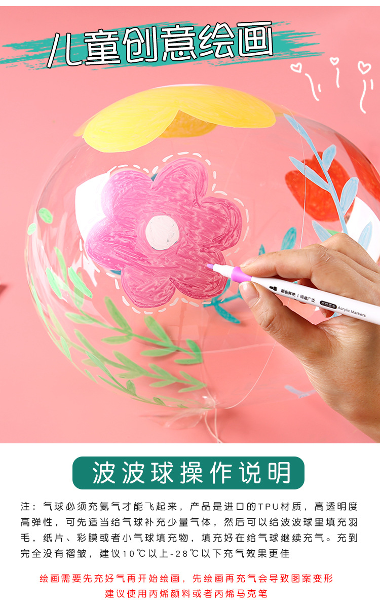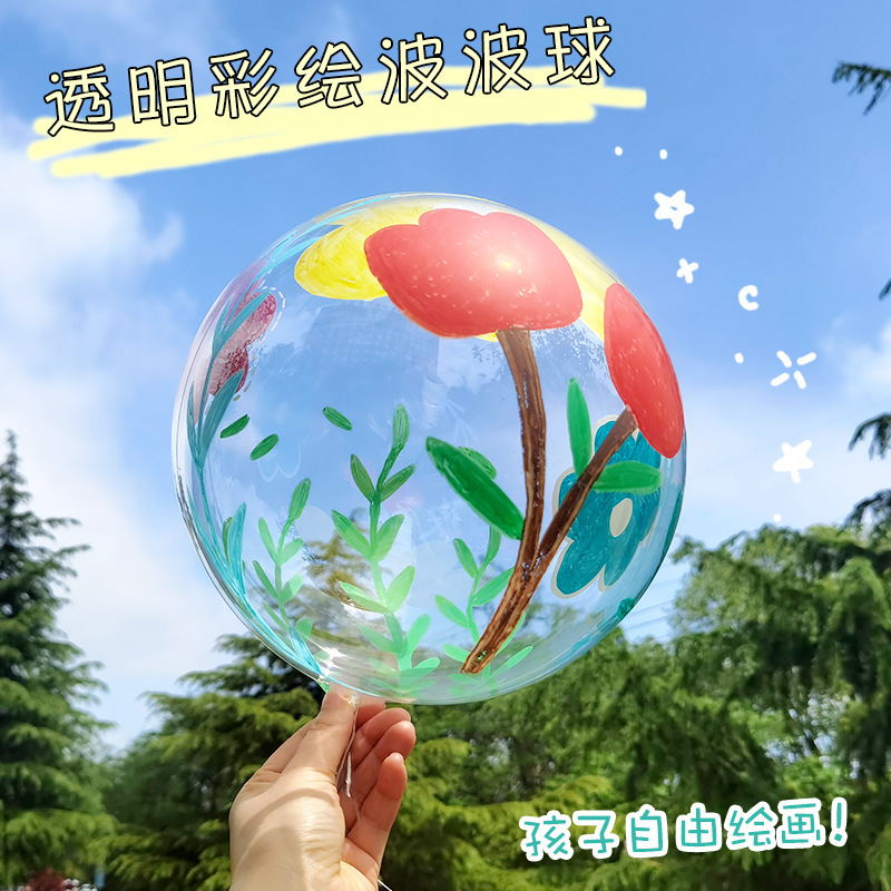 儿童手绘波波球幼儿园手工diy涂鸦球网红波波球皮大口径气球地摊