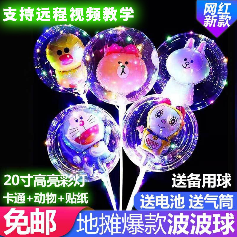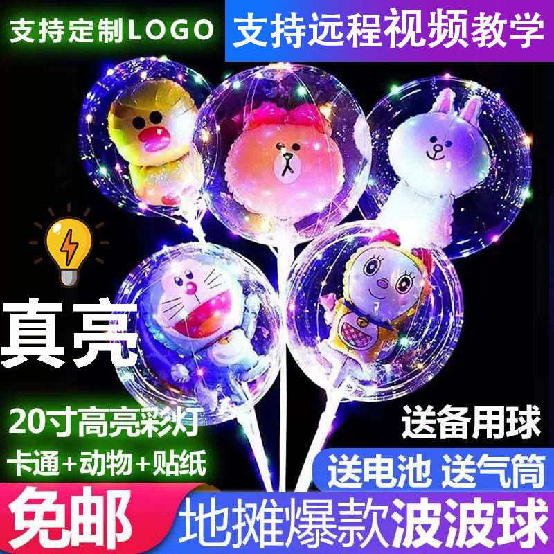 20寸波波球会发光气球网红气球 卡通摆地摊气球玫瑰花网红波波球