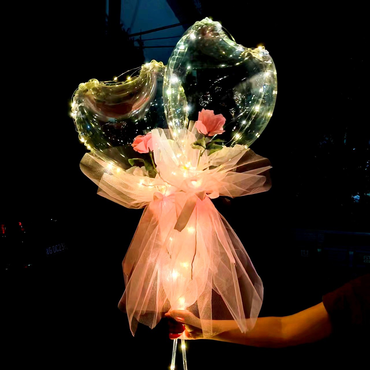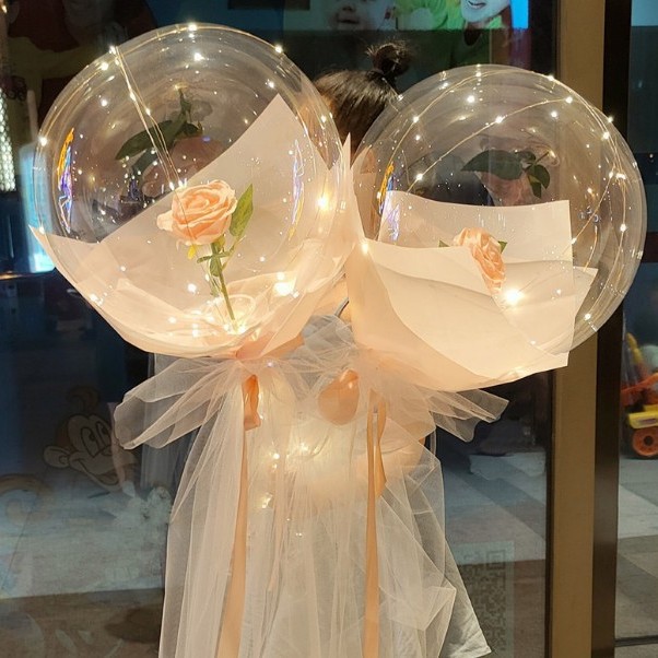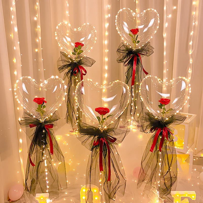 网红玫瑰花波波球发光火爆款带灯气球夜光地推花束材料情人节摆摊
