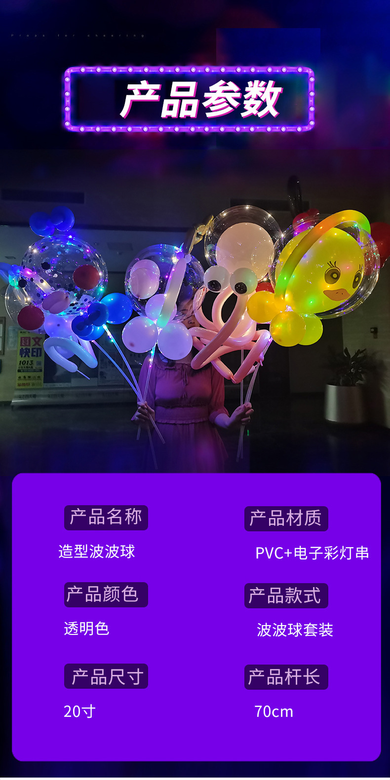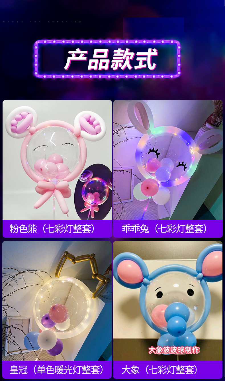 网红摆摊波波球造型卡通动物波波球发光气球厂家批发