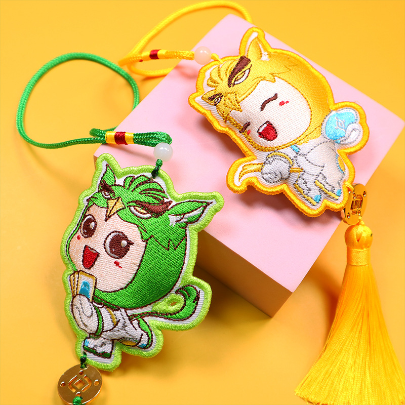 定制卡通布艺双面刺绣御守车载香囊球流苏挂件充棉香包吊坠小礼品