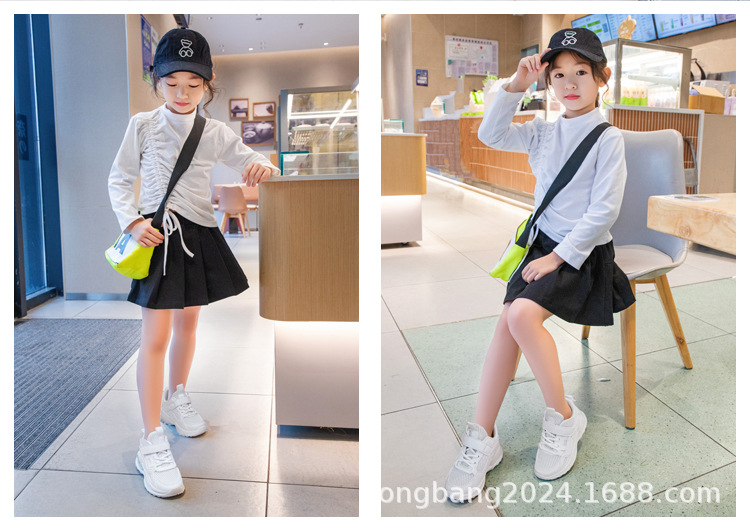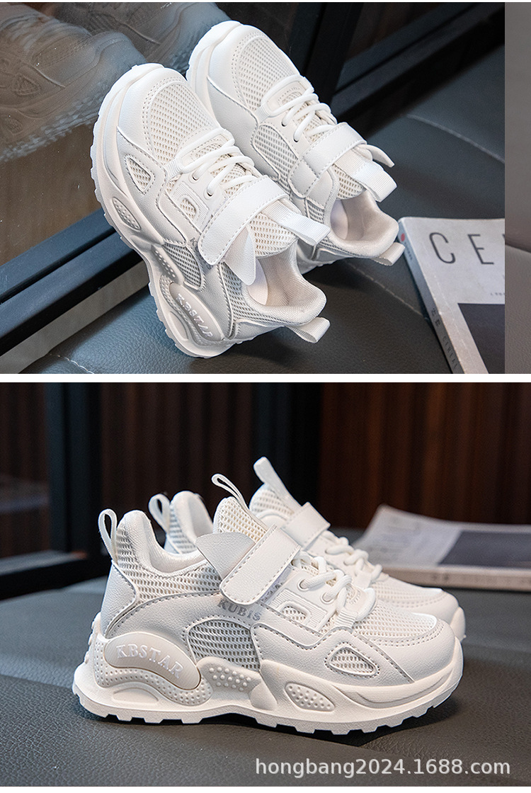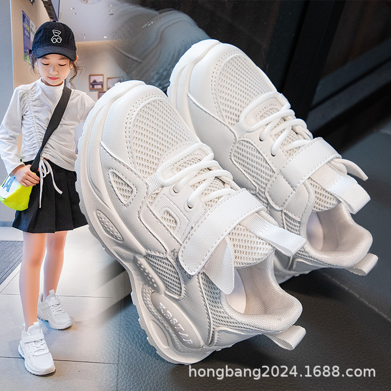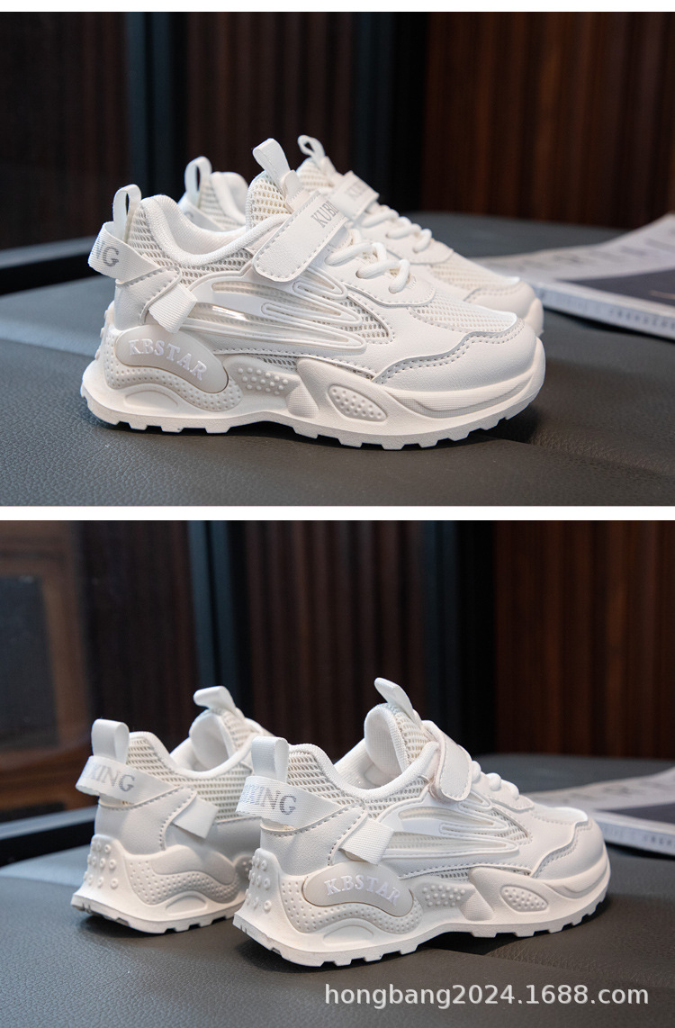 严选新款儿童小白鞋女童鞋子3-6岁7软底12透气2024年秋季运动鞋男