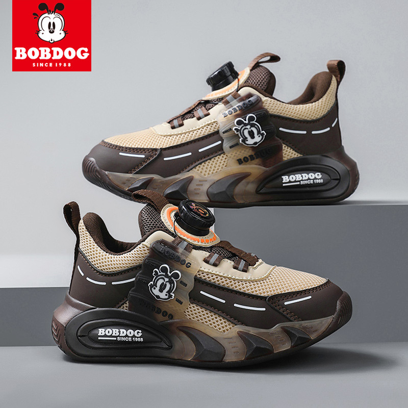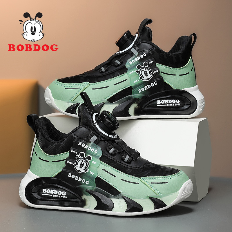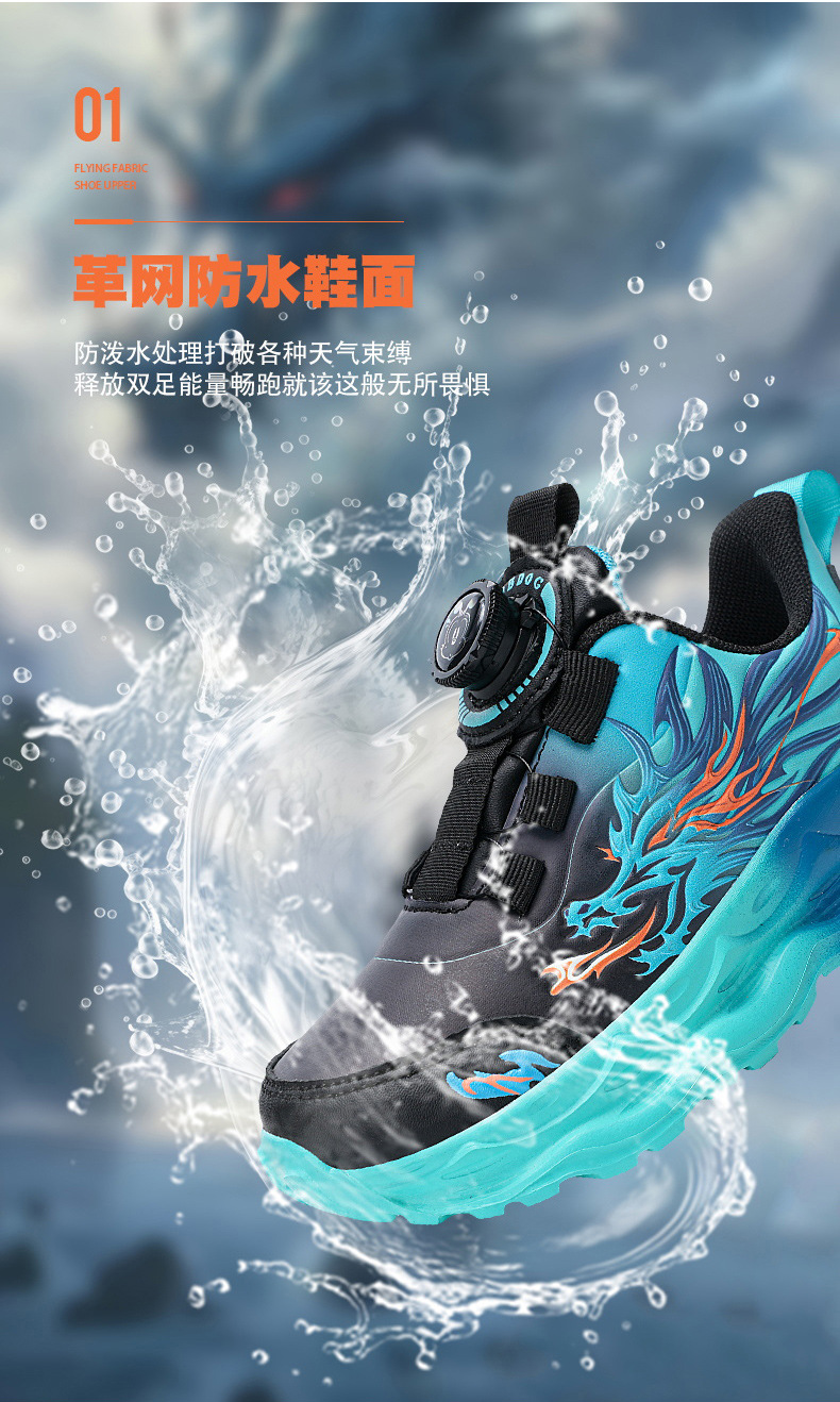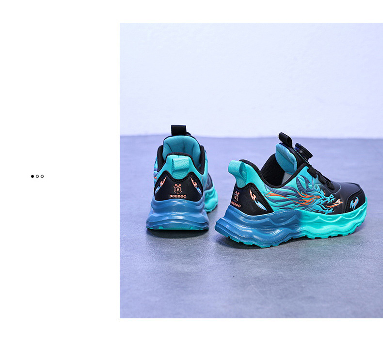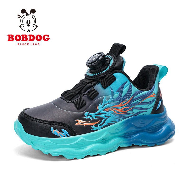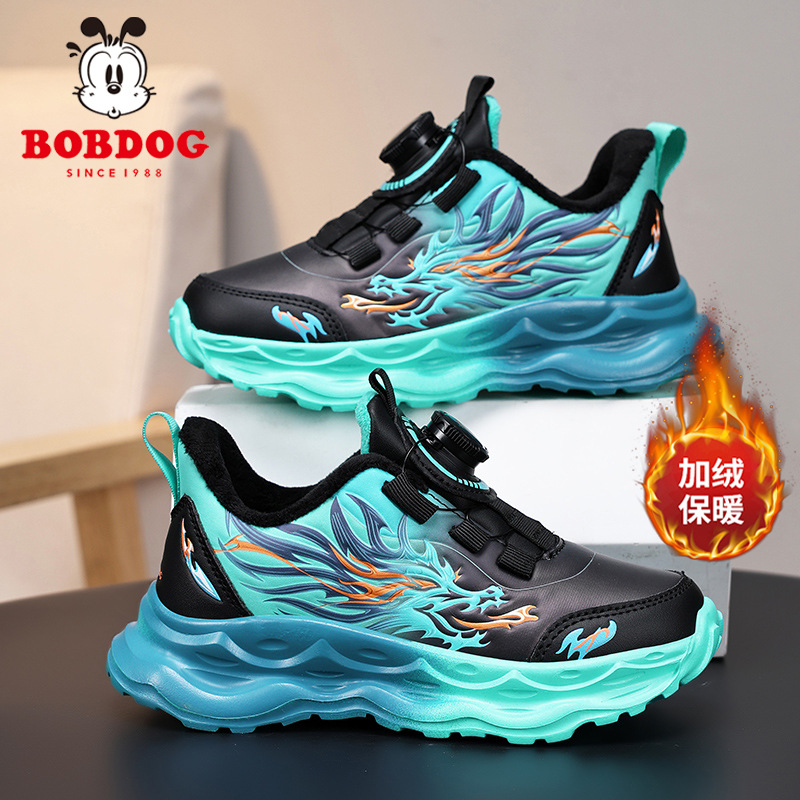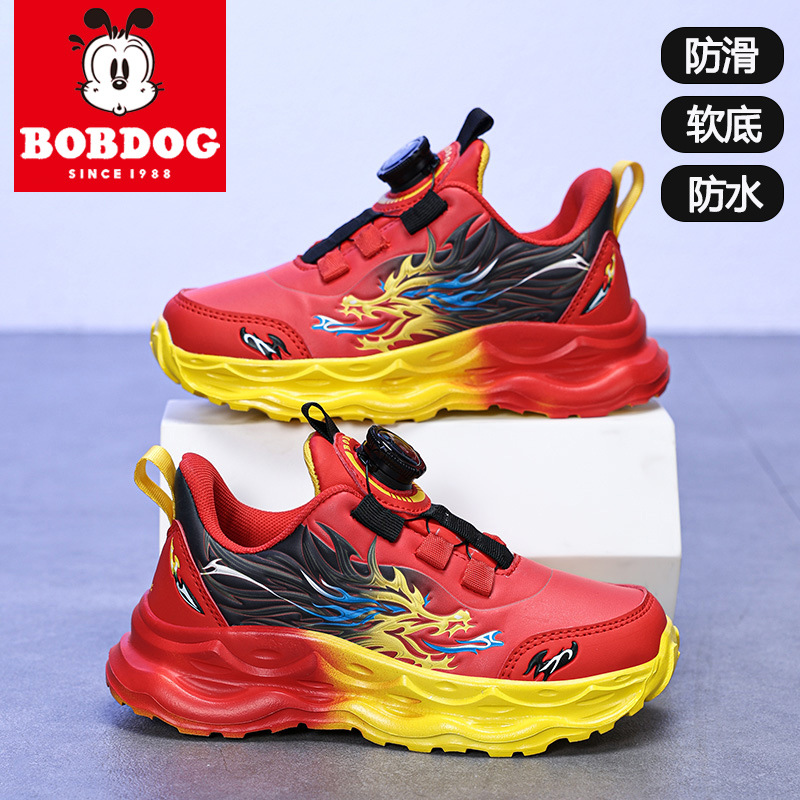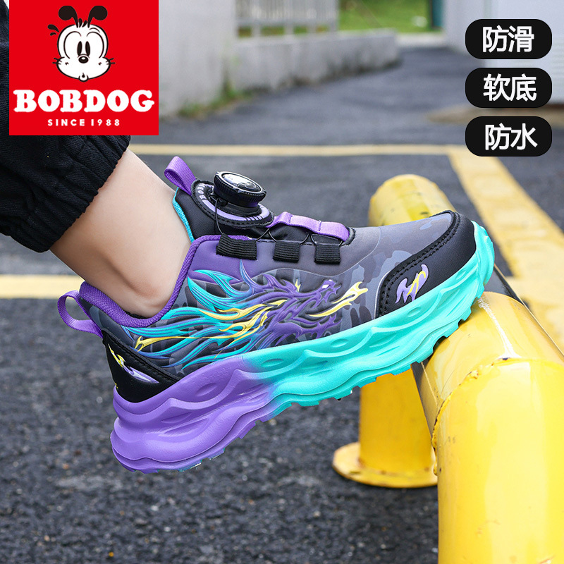 巴布豆童鞋男童运动鞋春秋新款6-12岁皮面防水儿童鞋子中大童网鞋