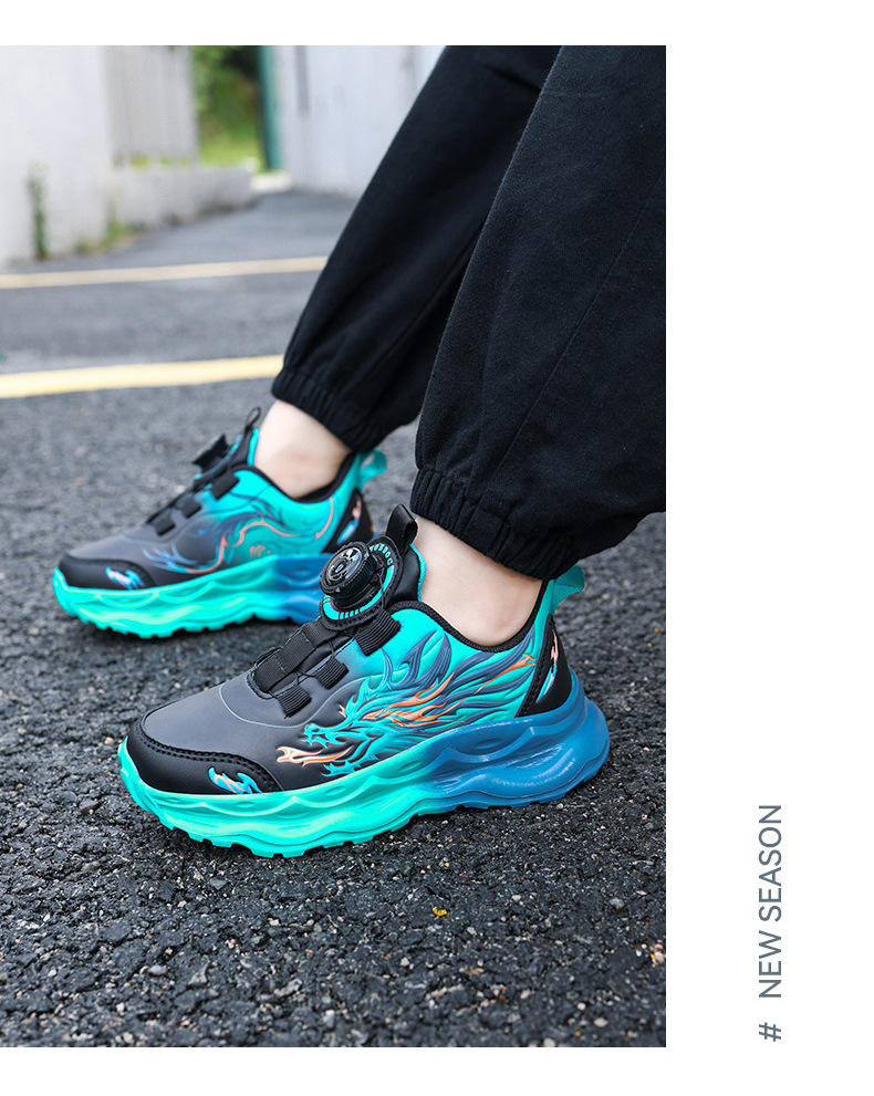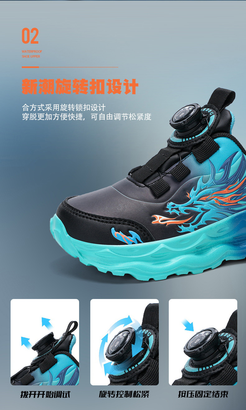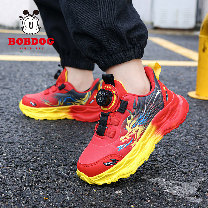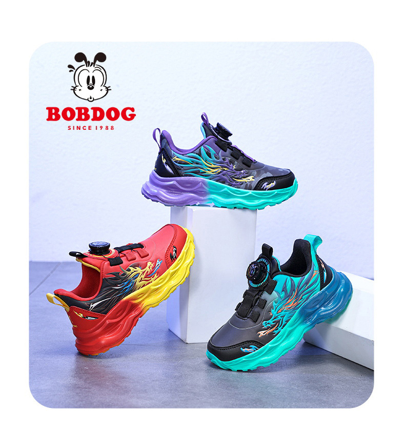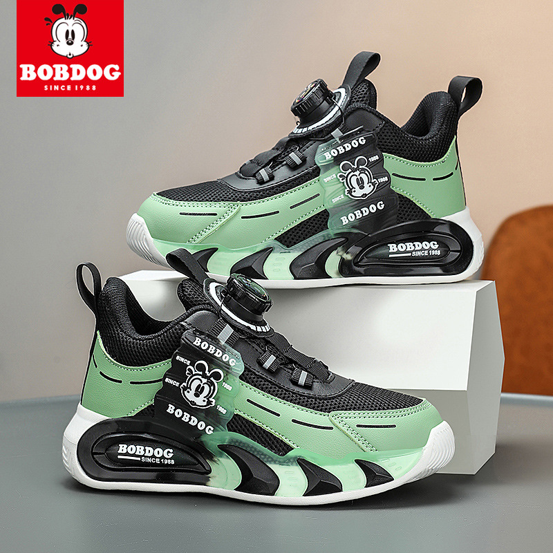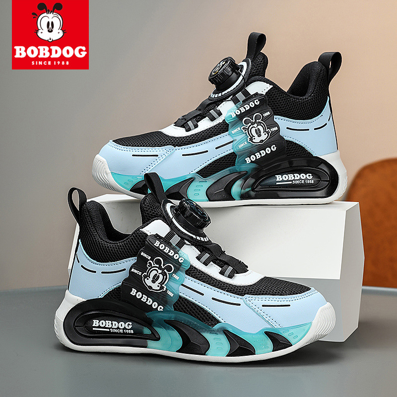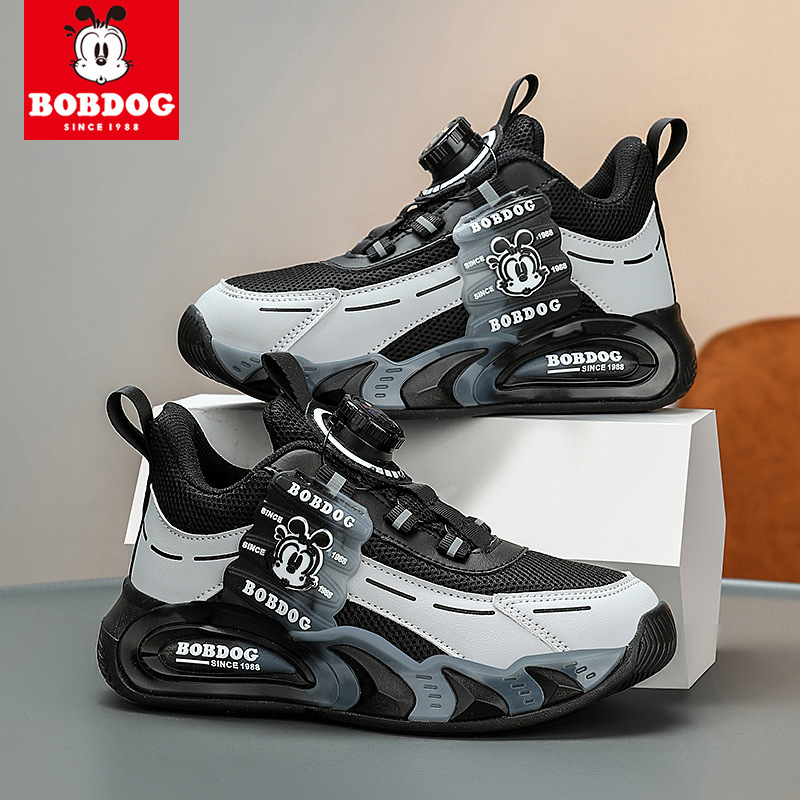 巴布豆童鞋男童运动鞋春秋新款6-12岁皮面防水儿童鞋子中大童网鞋