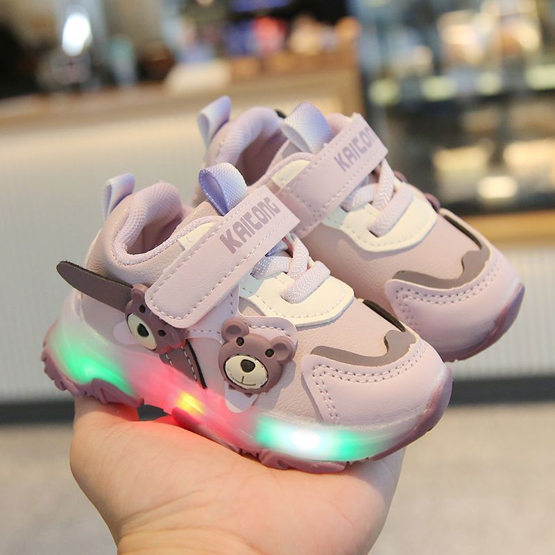 春秋款0-1-3岁运动鞋男女透气网鞋学步宝宝婴幼儿软底防滑亮灯