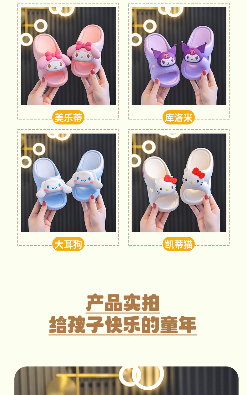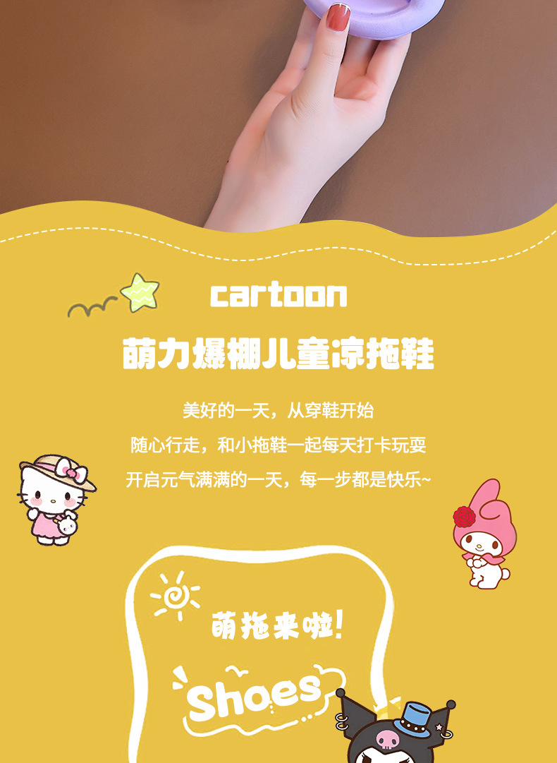 正版三丽鸥儿童拖鞋女童室内家居防臭防滑库洛米美乐蒂男童一字拖