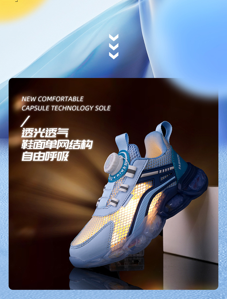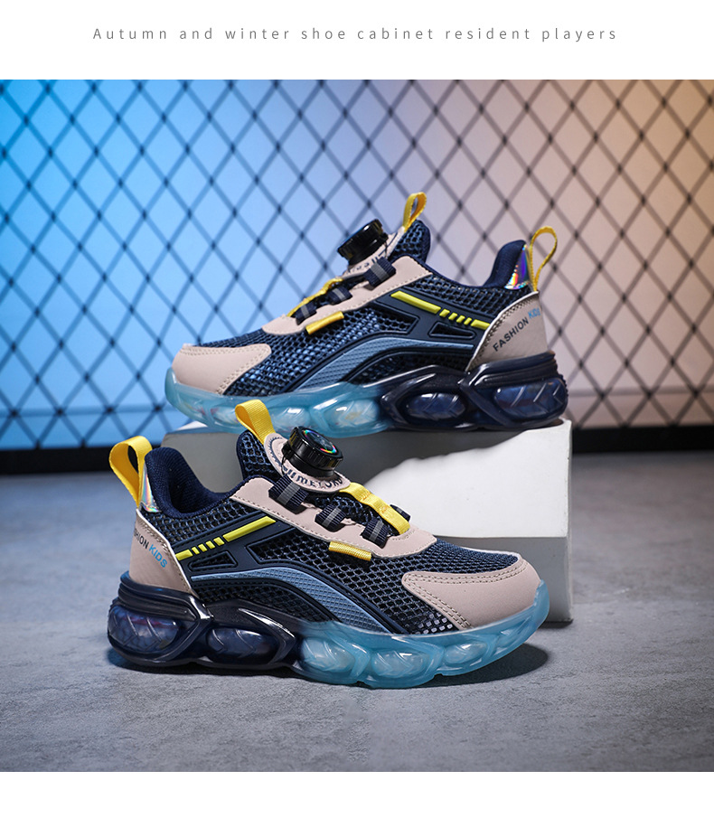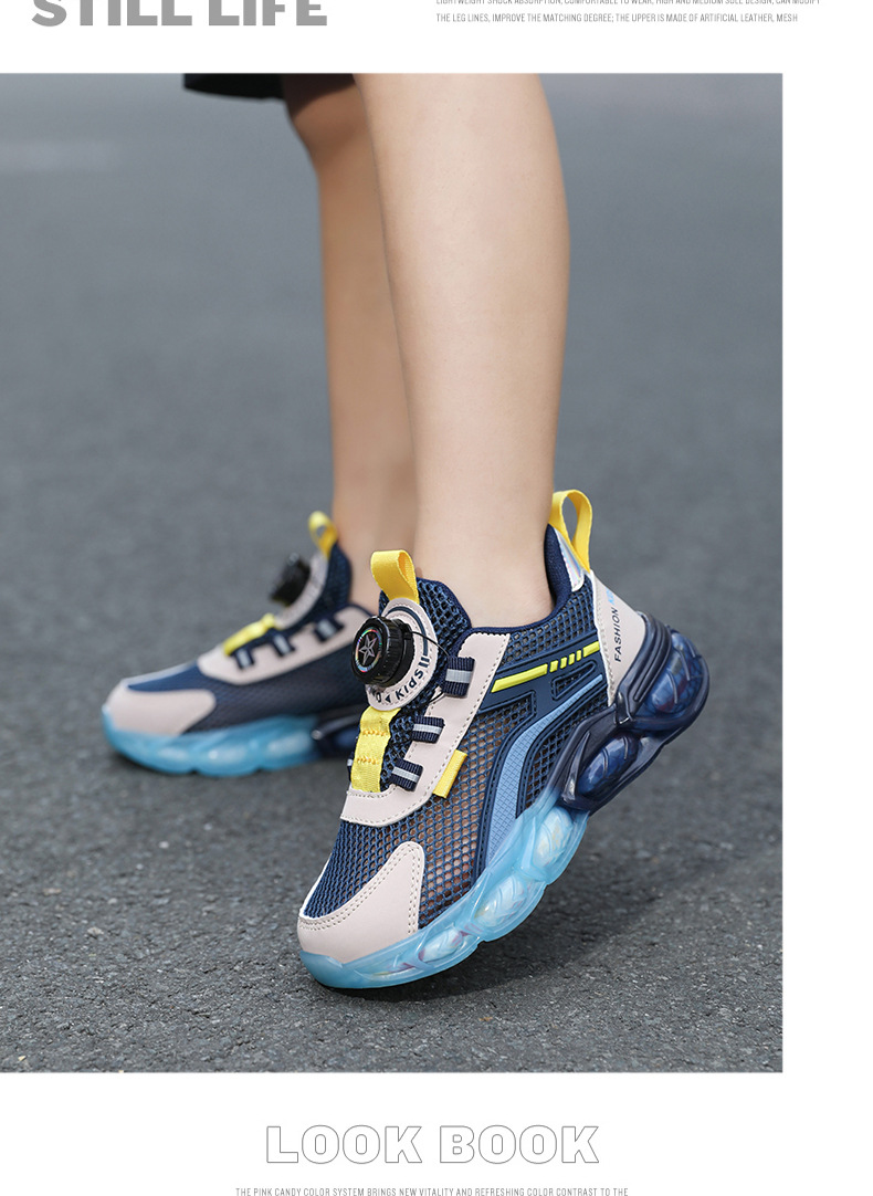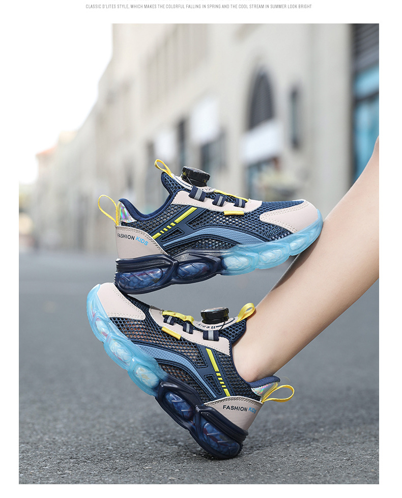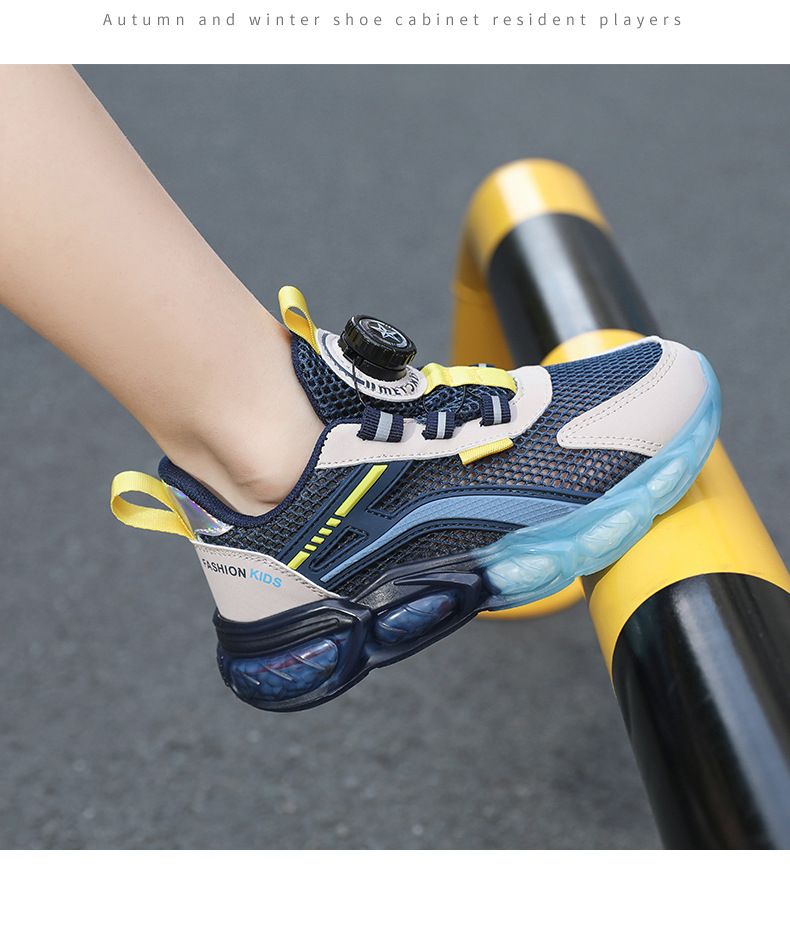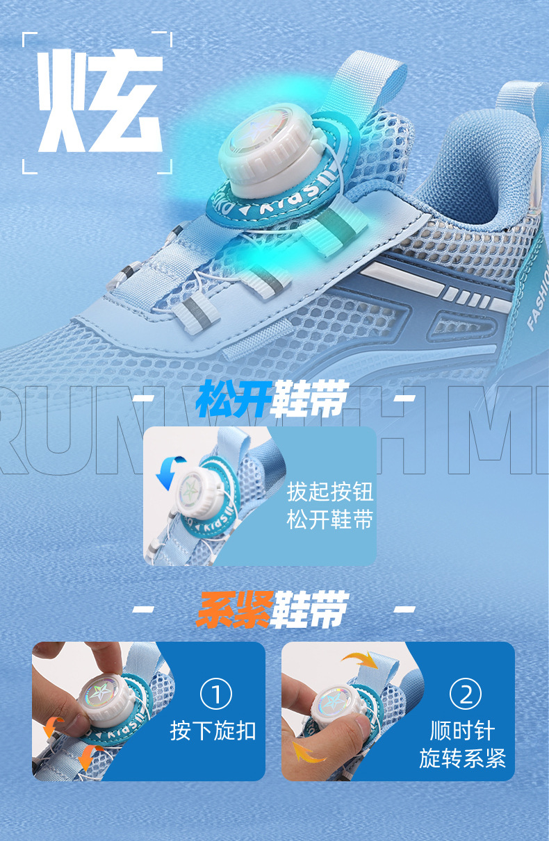 男童鞋子2025春夏季新款单网儿童旋转纽扣运动鞋中大童休闲鞋批发