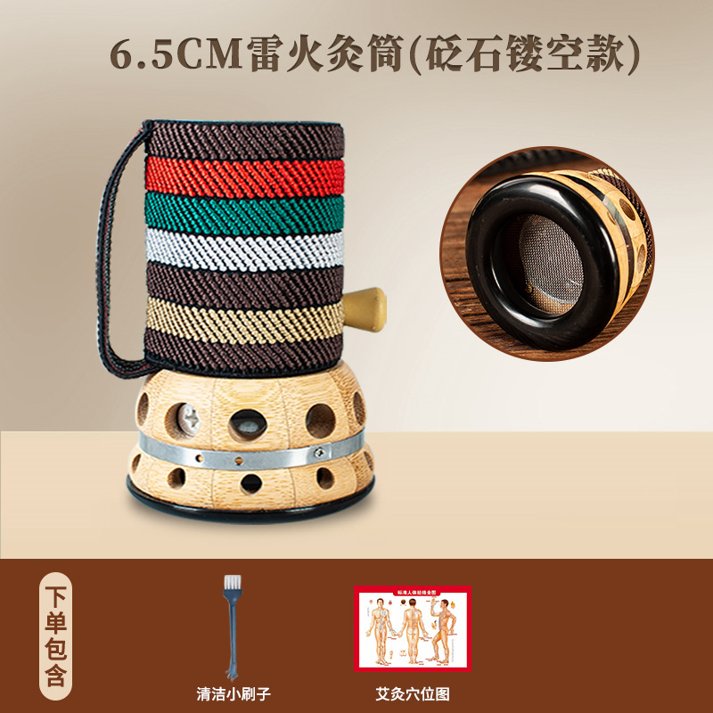 砭石艾灸罐 手持艾灸盒 竹制刮痧罐便携式推拿温灸器全身通用批发