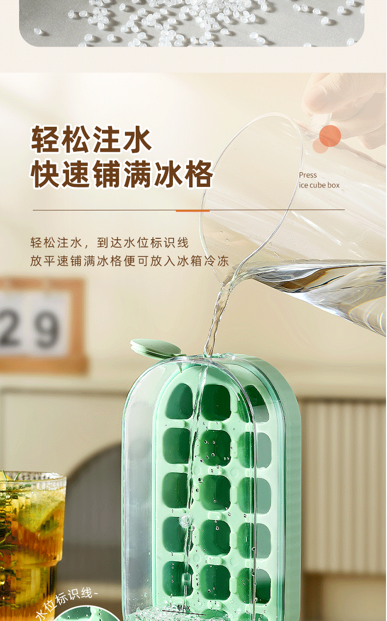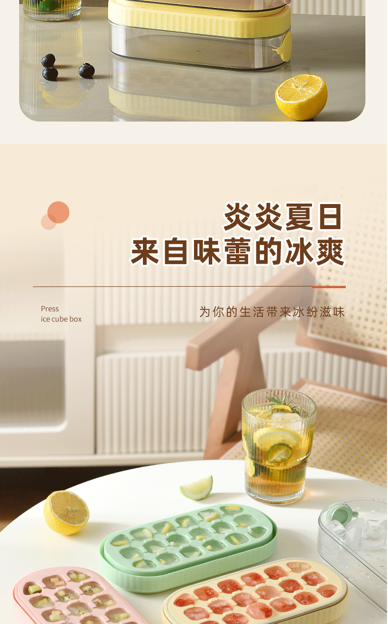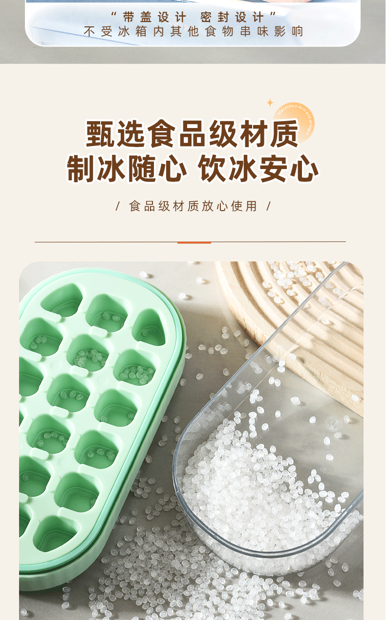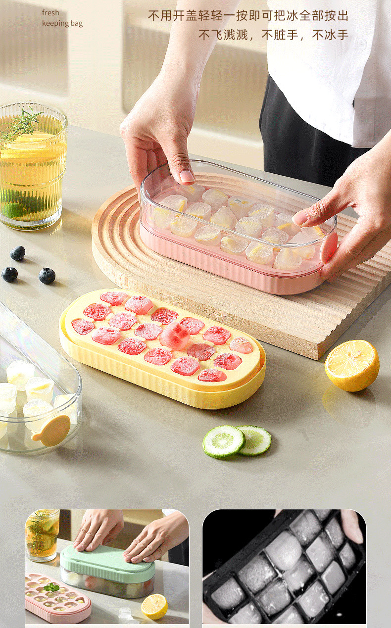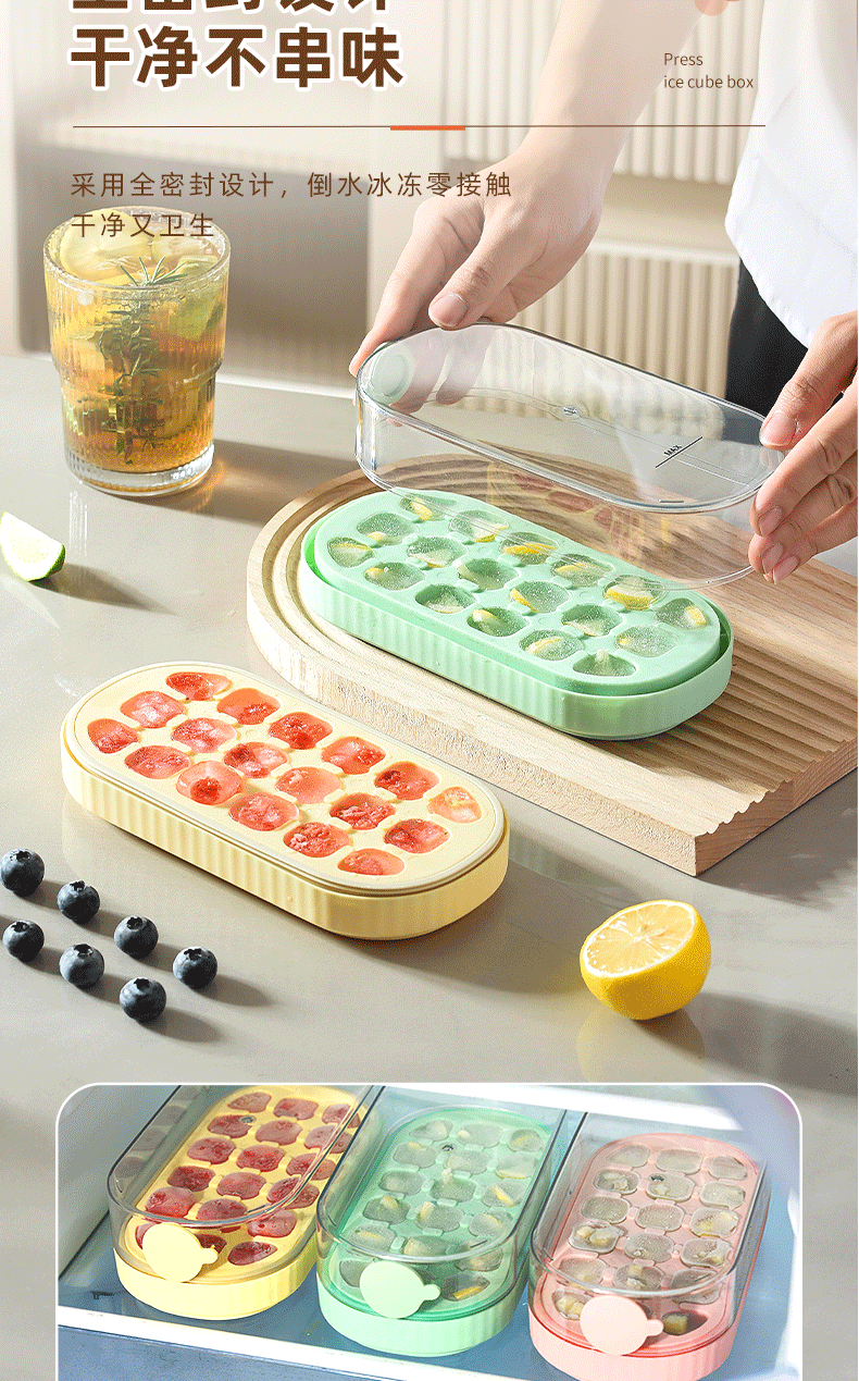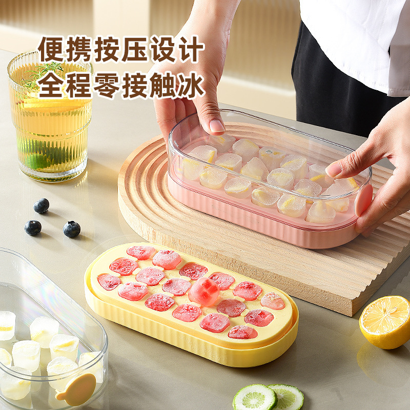 冰块模具硅胶食品级按压式冰格家用储冰制冰盒带盖冰格制冰盒