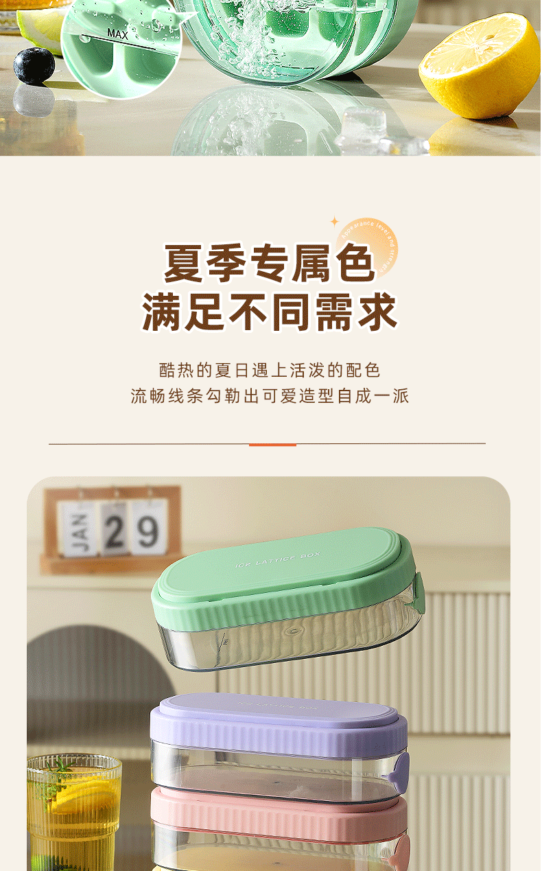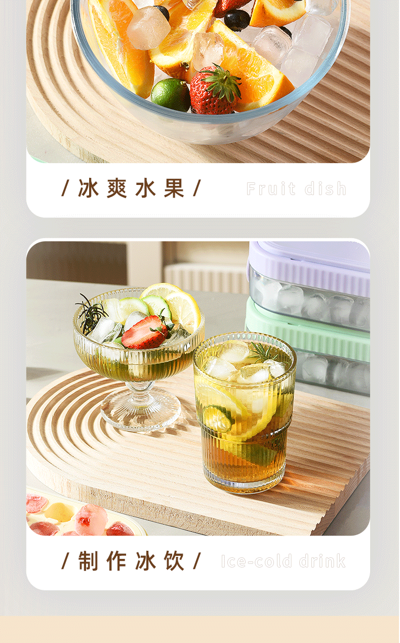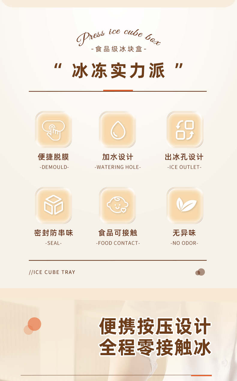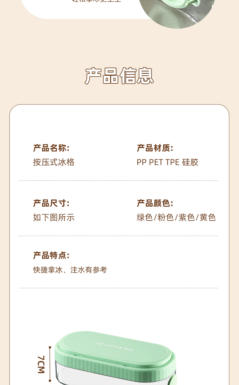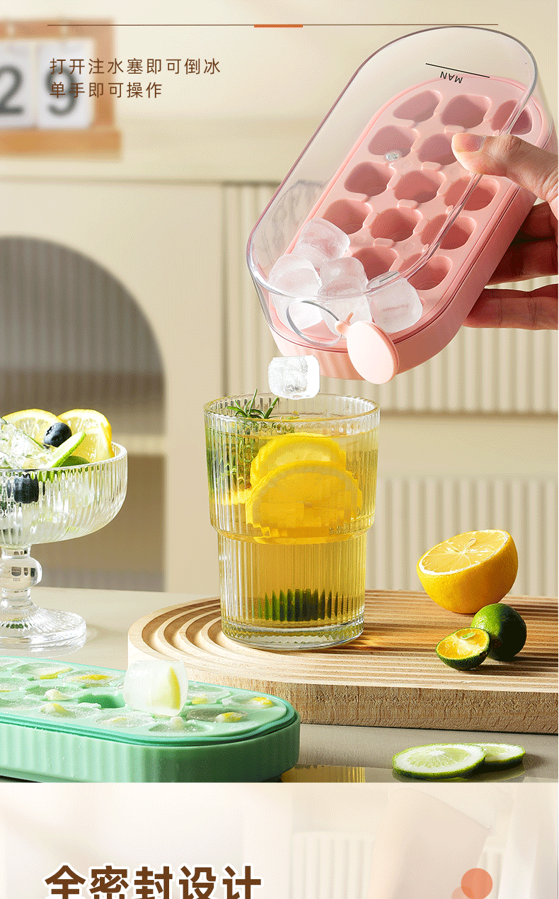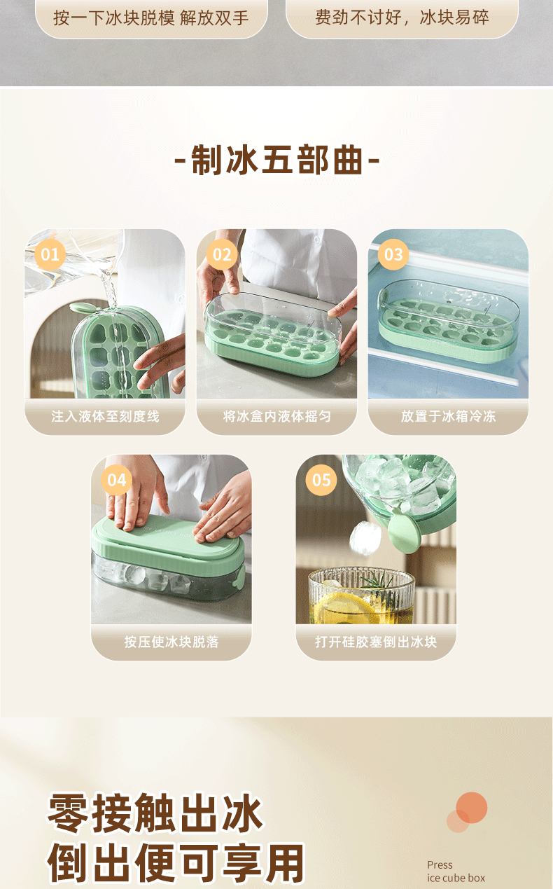 冰块模具硅胶食品级按压式冰格家用储冰制冰盒带盖冰格制冰盒