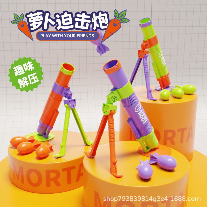 现货重力萝卜追击炮可发射飞片网红创意解压玩具儿童萝卜炮萝卜锯