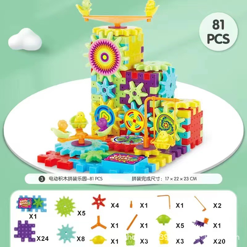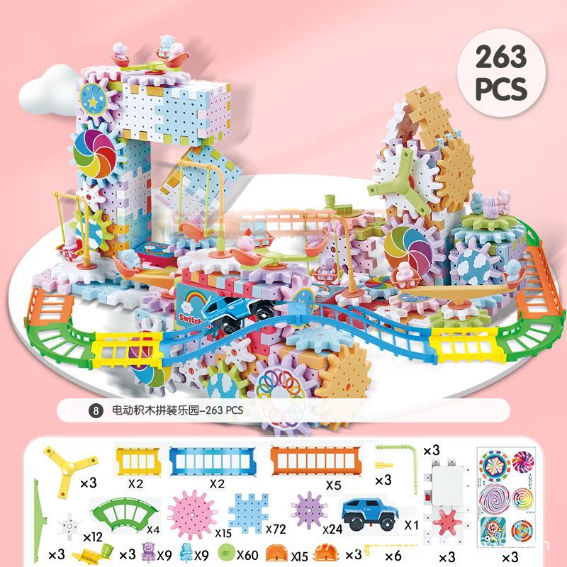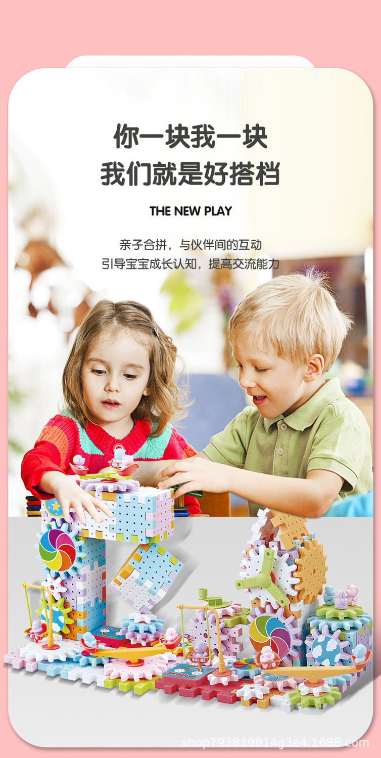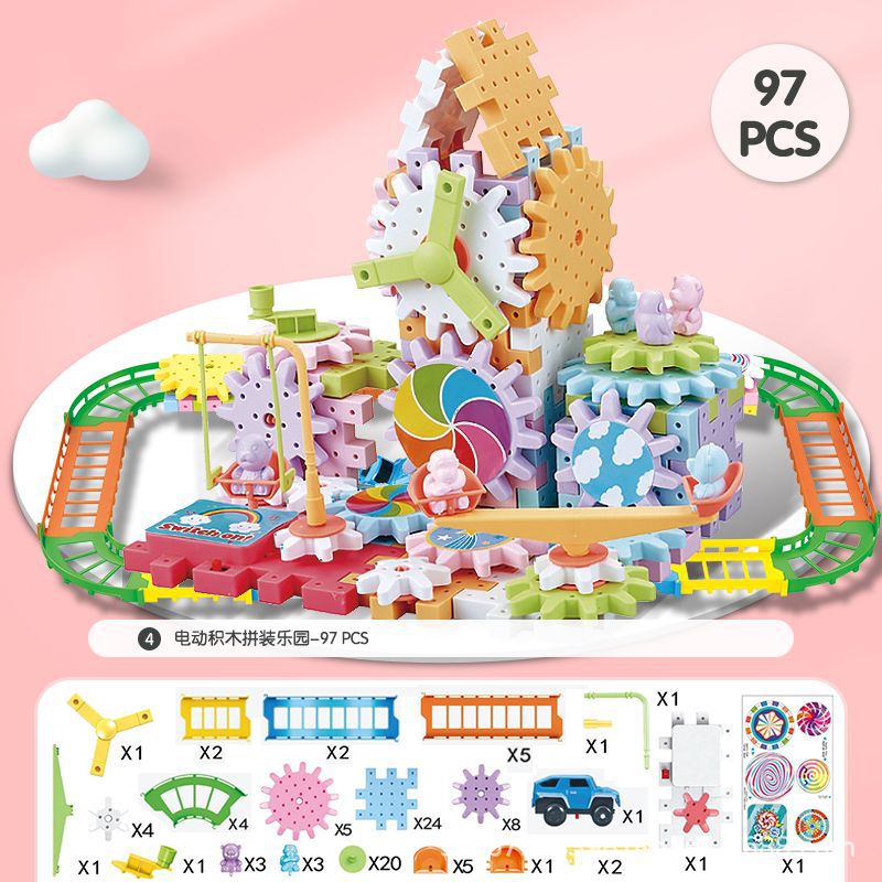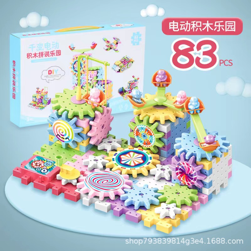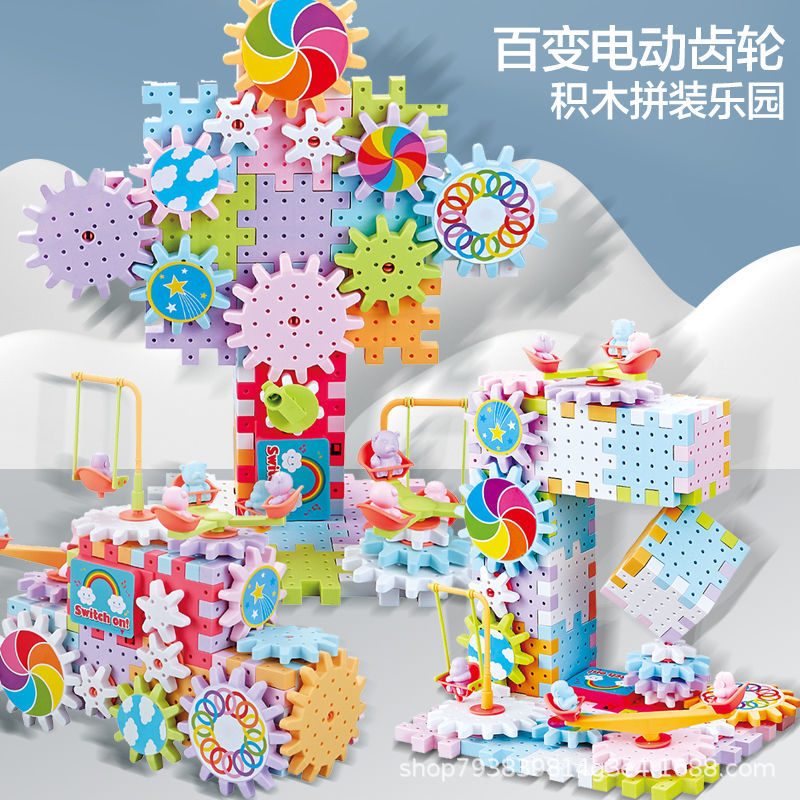 抖音同款电动齿轮积木电子套装拼插拼装电动儿童玩具轨道男女孩子