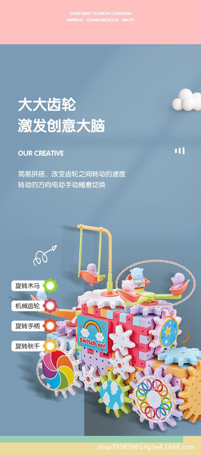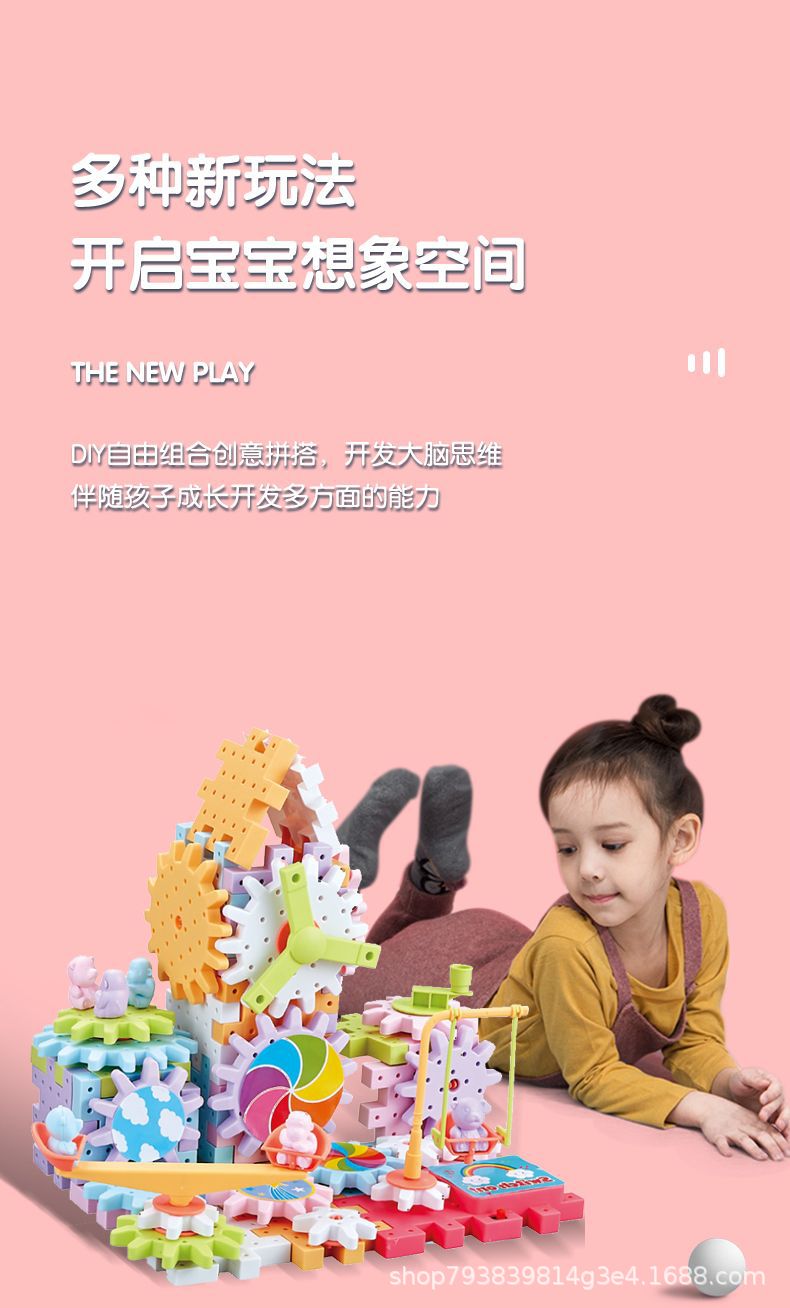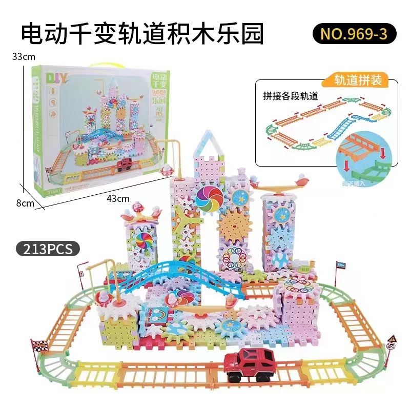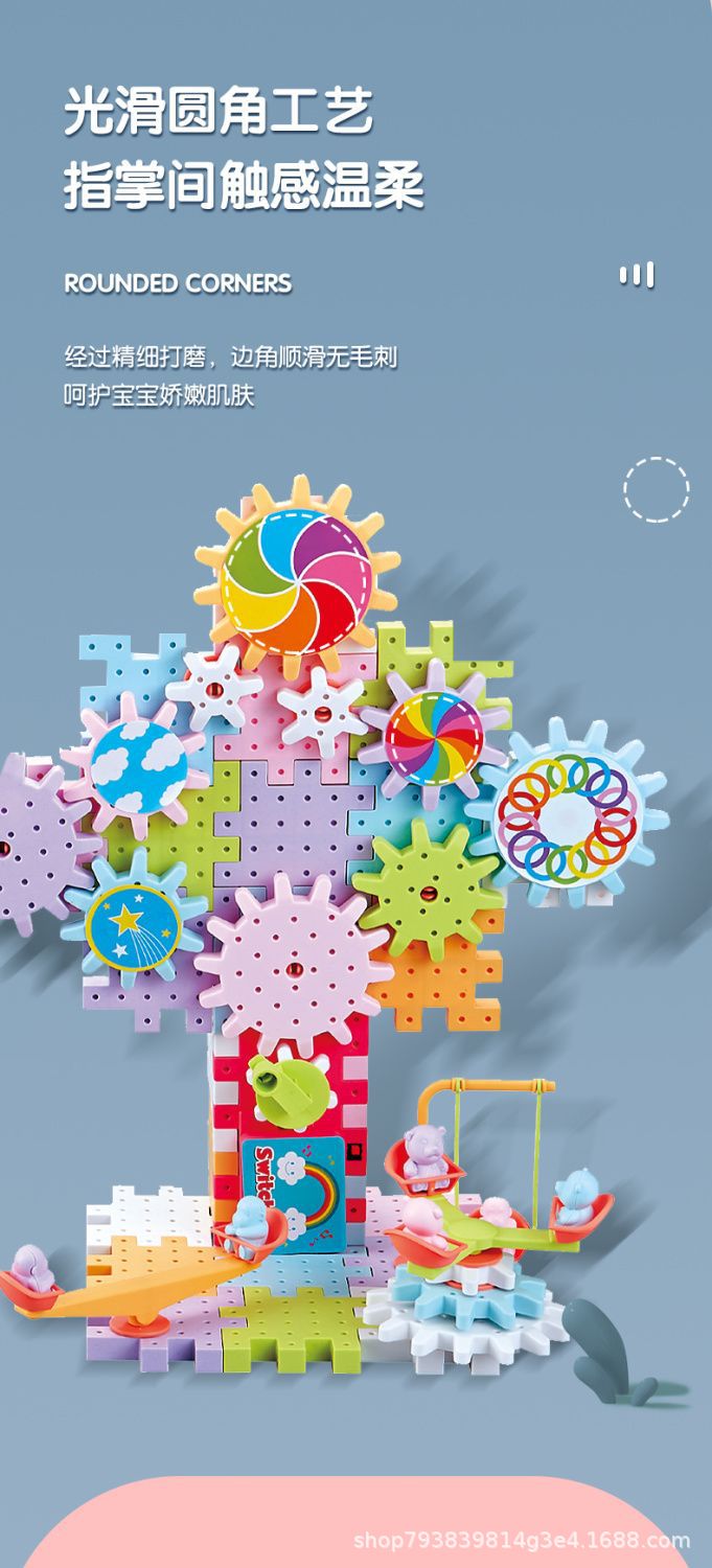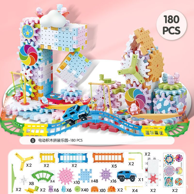 抖音同款电动齿轮积木电子套装拼插拼装电动儿童玩具轨道男女孩子