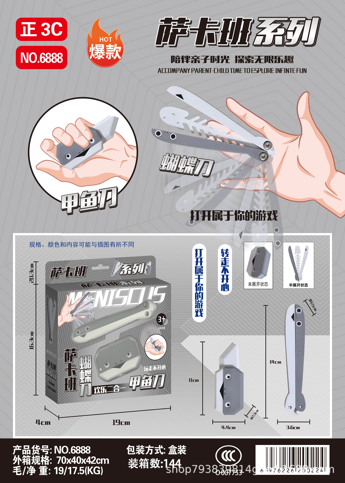 萨卡班甲鱼萝卜刀重力蝴蝶刀玩具创意整蛊解压玩具抖音爆款3D打印