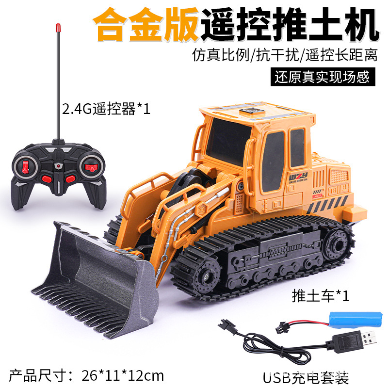 跨境合金遥控推土车儿童遥控车模型工程车推土机小男孩礼品玩具车