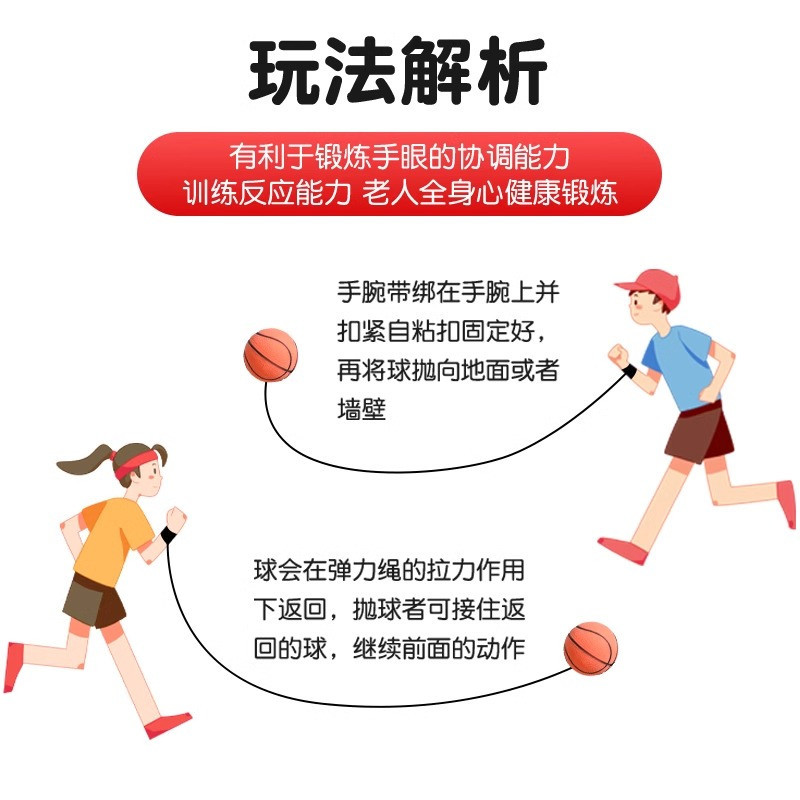 手腕弹力球带绳中老年人健身球甩甩球儿童腕力球手眼协调锻炼玩具