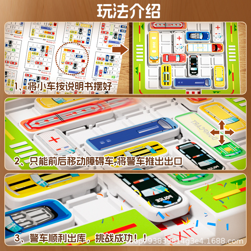 儿童移车出库汽车华容道幼儿园玩具赛车突围解题闯关桌面游戏教具