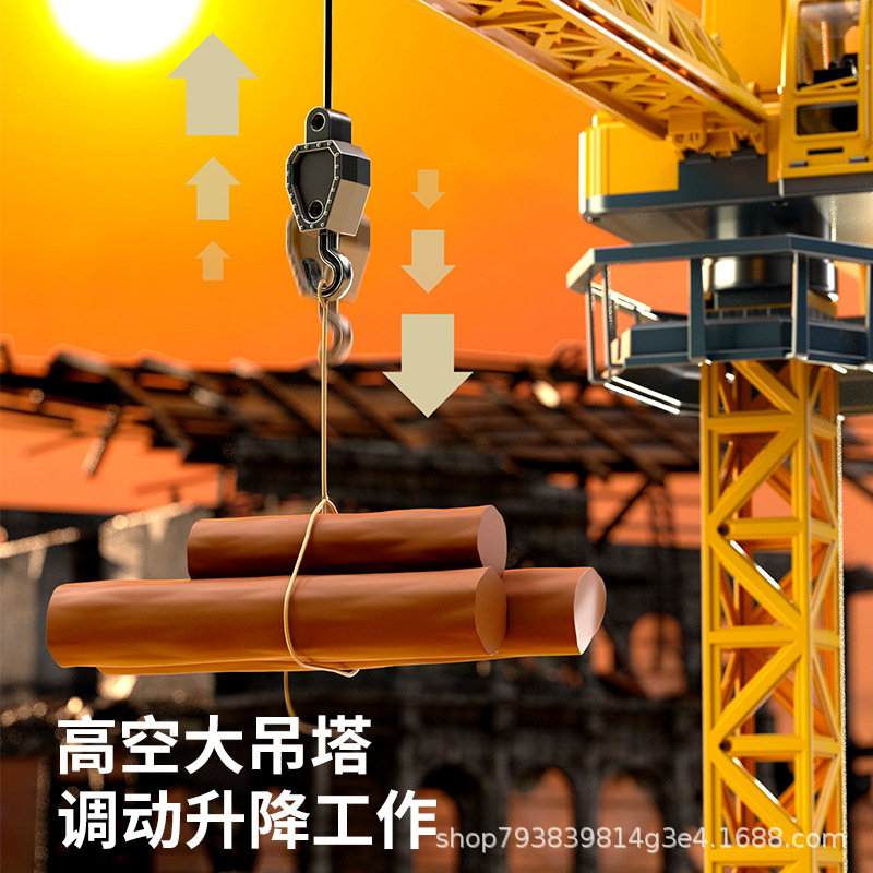 1.28米超大号无线遥控吊塔电动工程车玩具儿童互动起重机吊车吊机