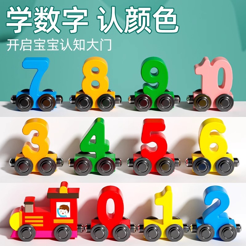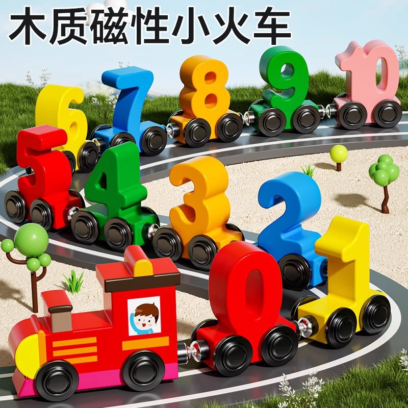 磁性数字小火车积木拼装车益智儿童木制玩具1-2岁3岁宝宝早教启蒙