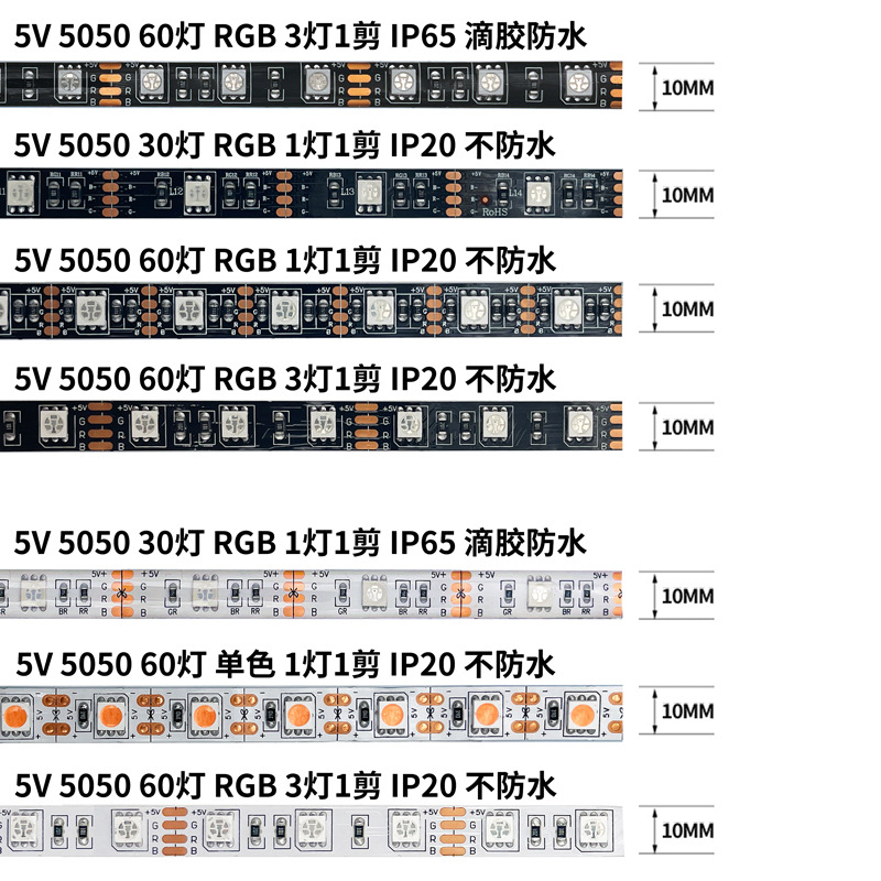 | 5v 5050 60 light rgb non-waterproof one light one cut(5V 5050 60灯 RGB 不防水 一灯一剪) | USD $1.11 | 885520 rice available |