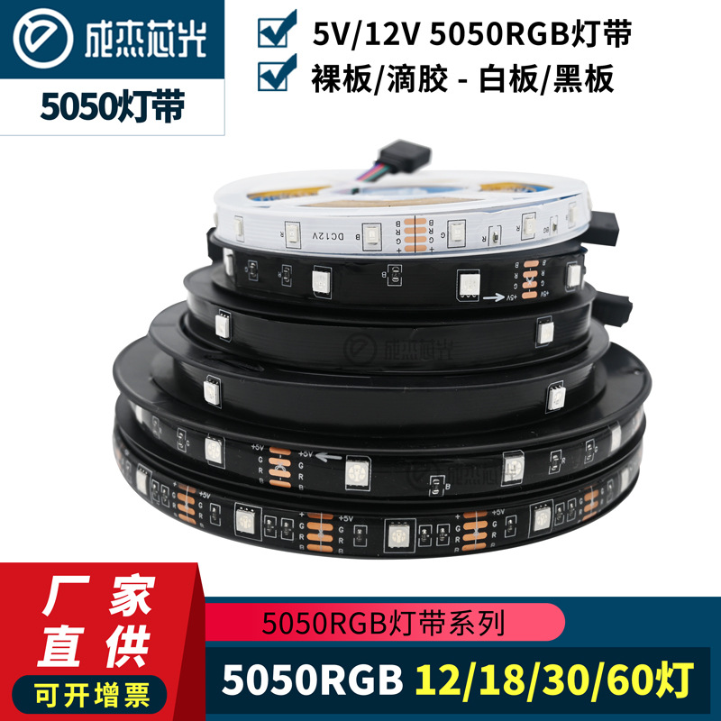 led灯带5V12V 5050RGB黑板30灯60灯电脑电视背景灯低压七彩装饰灯