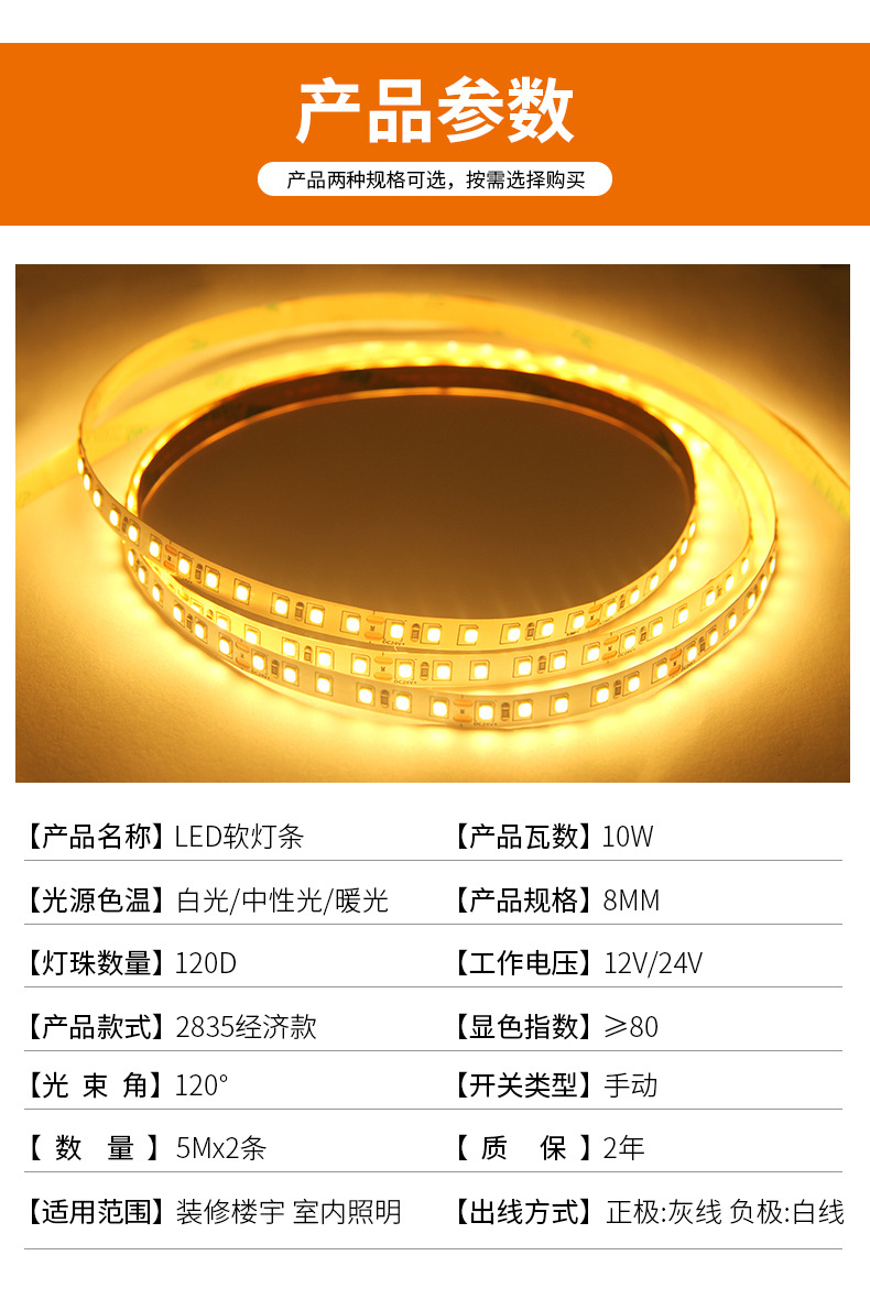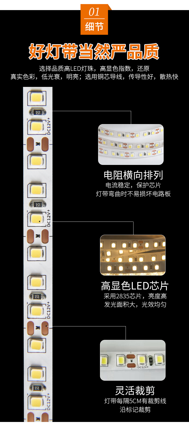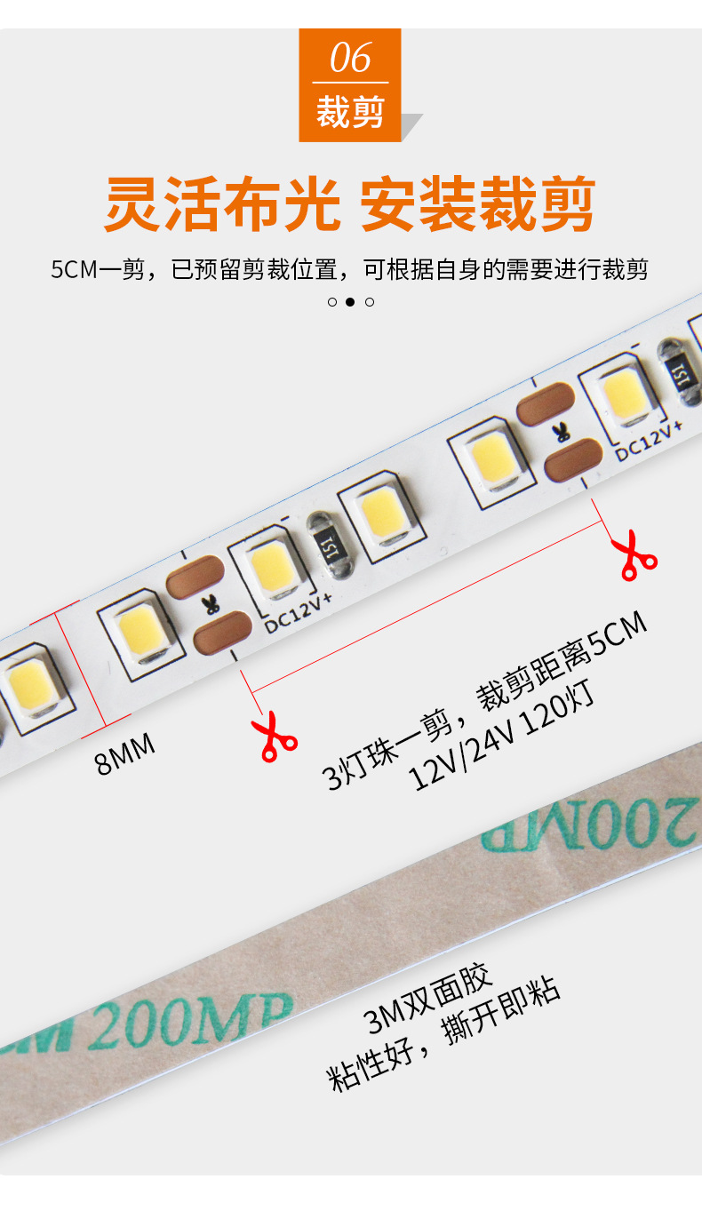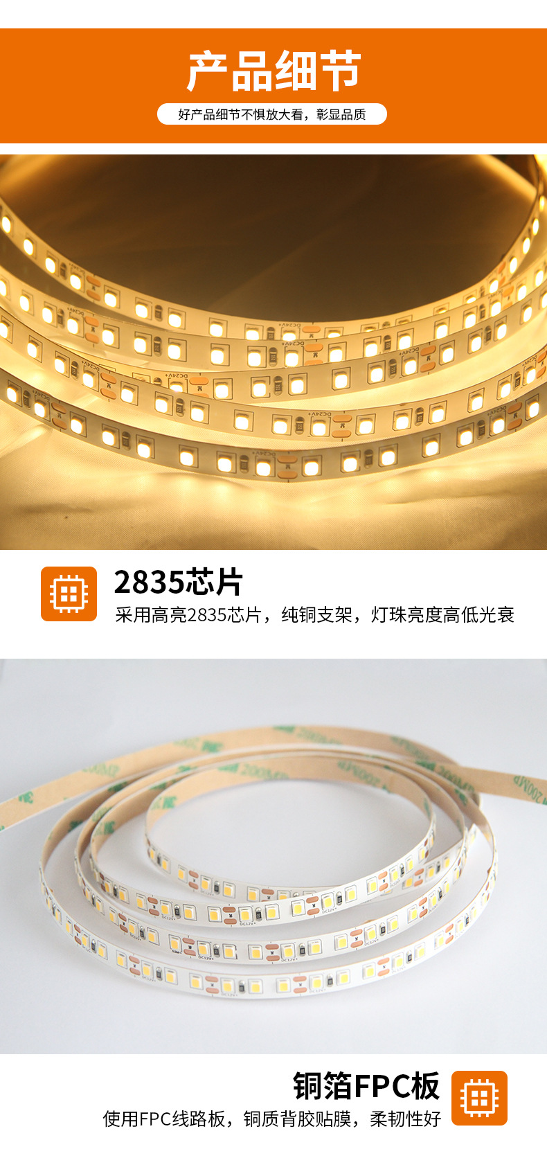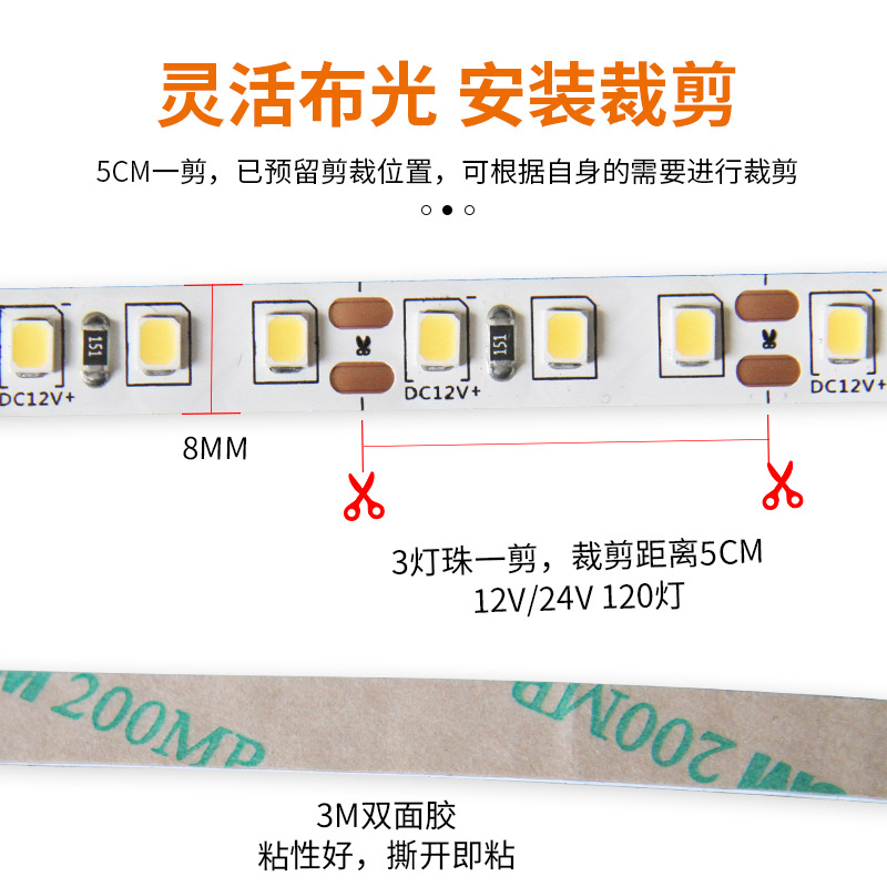 灯带led灯家用自粘12V24V低压软灯条客厅高亮柔性高显色2835灯带